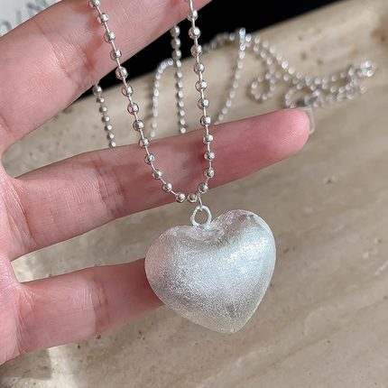 银白色拉丝爱心轻奢高级感项链长款毛衣链气质时髦颈链潮人小众女