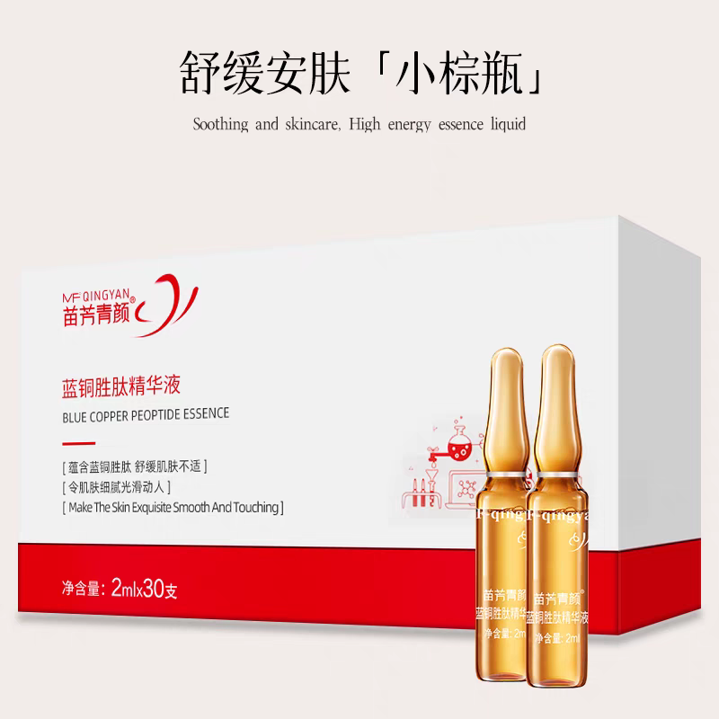 苗方清颜蓝铜胜肽精华液原液正品保湿提亮抗衰修复护敏感肌红血丝