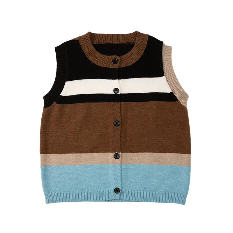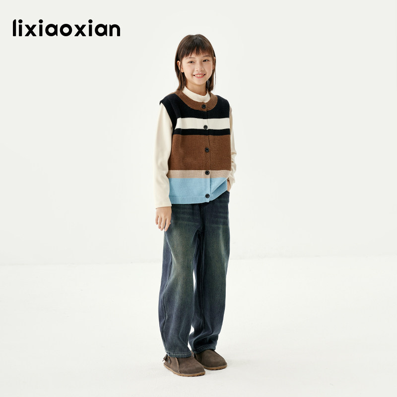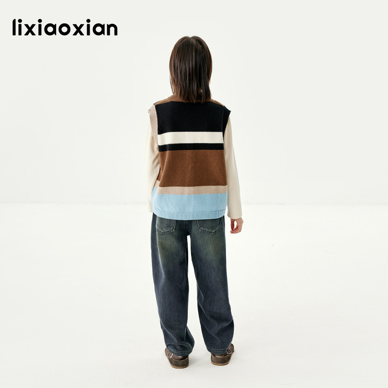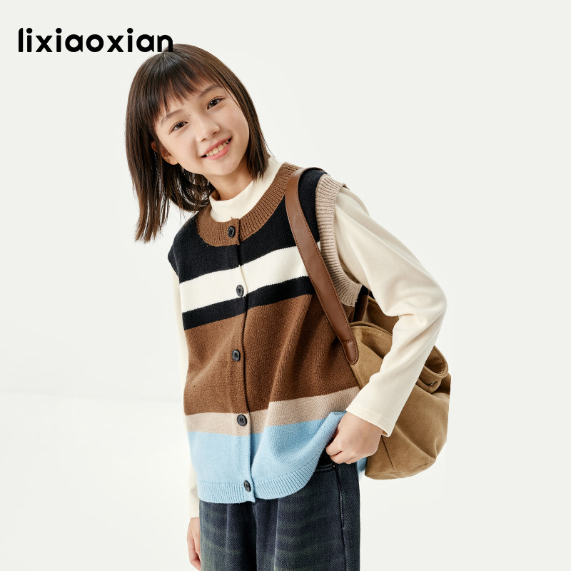 梨小闲女童多彩针织撞色洋气毛衣儿童马甲秋冬款条纹针织背心