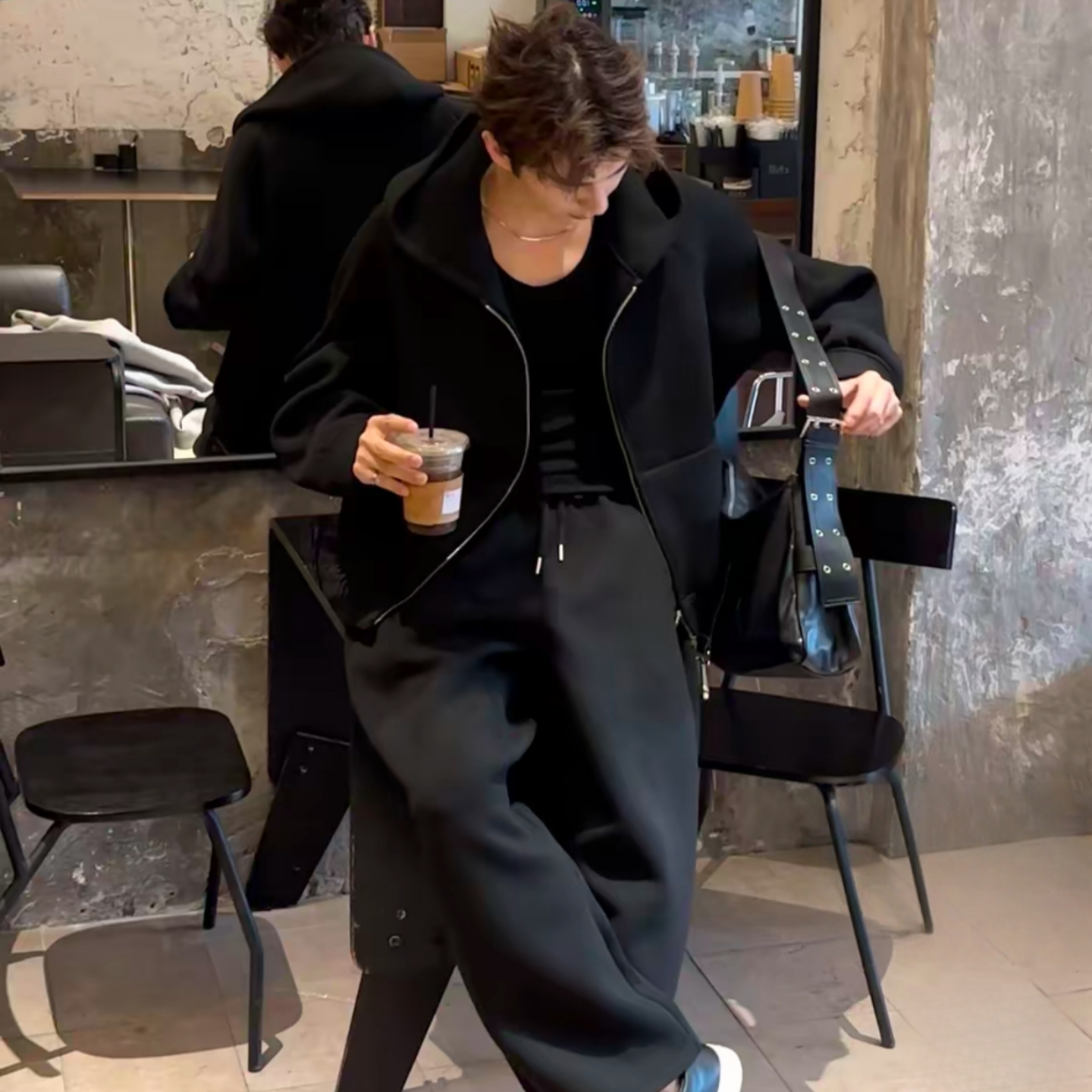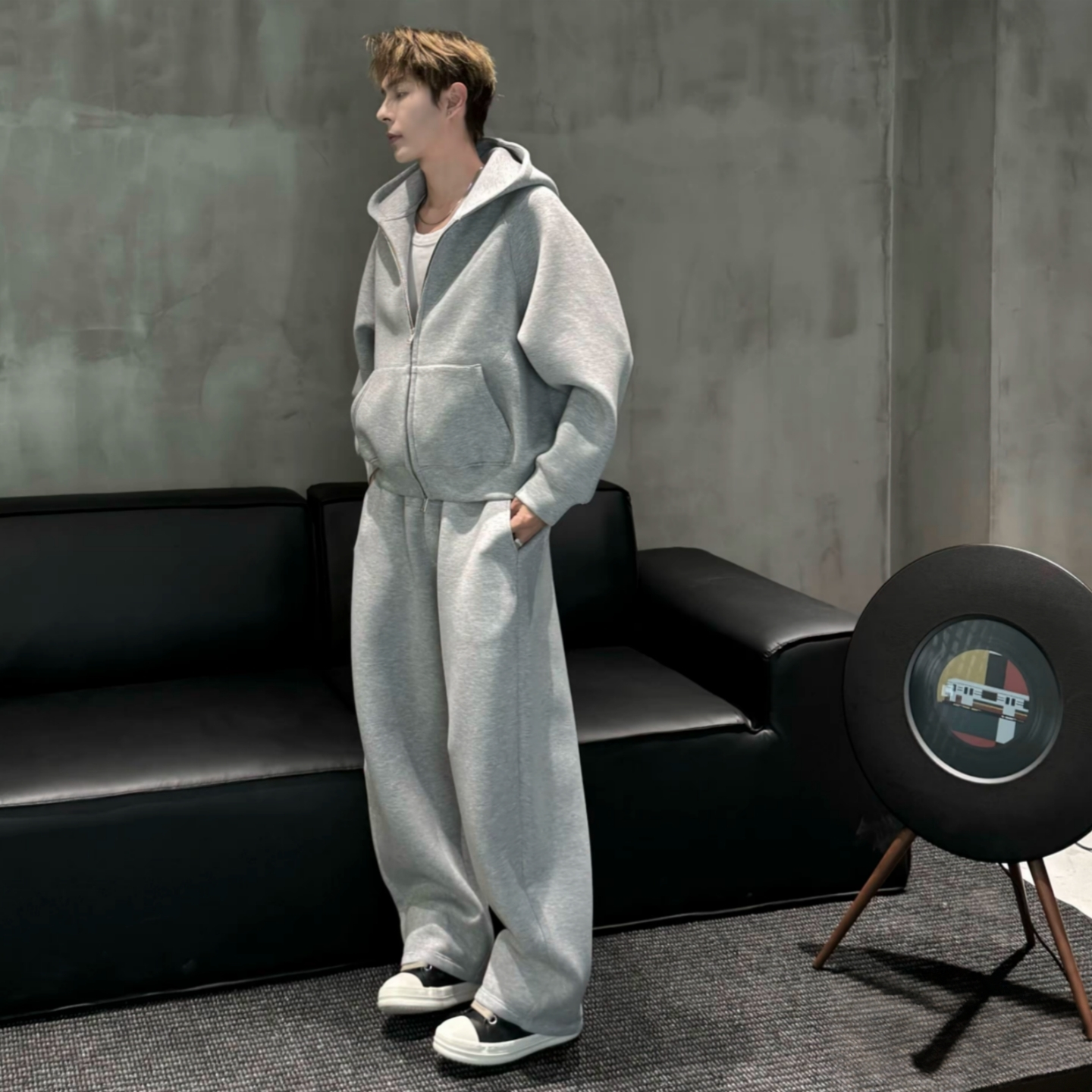 秋季情侣款休闲运动套装连帽卫衣外套休闲百搭卫裤两件套男女同款