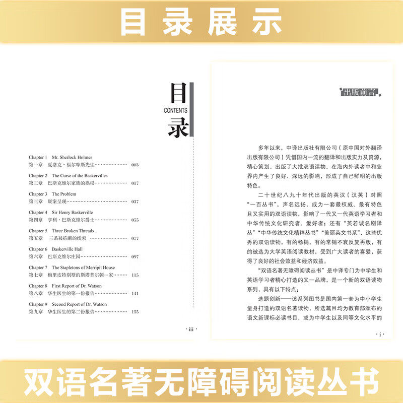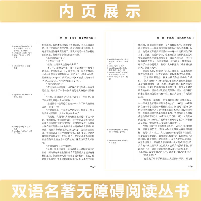 福尔摩斯探案经典 巴斯克维尔的猎犬 中英对照书籍双语读物侦探推理小说青少年世界名著中英文双语版外国小说畅销书 英文版 图书籍