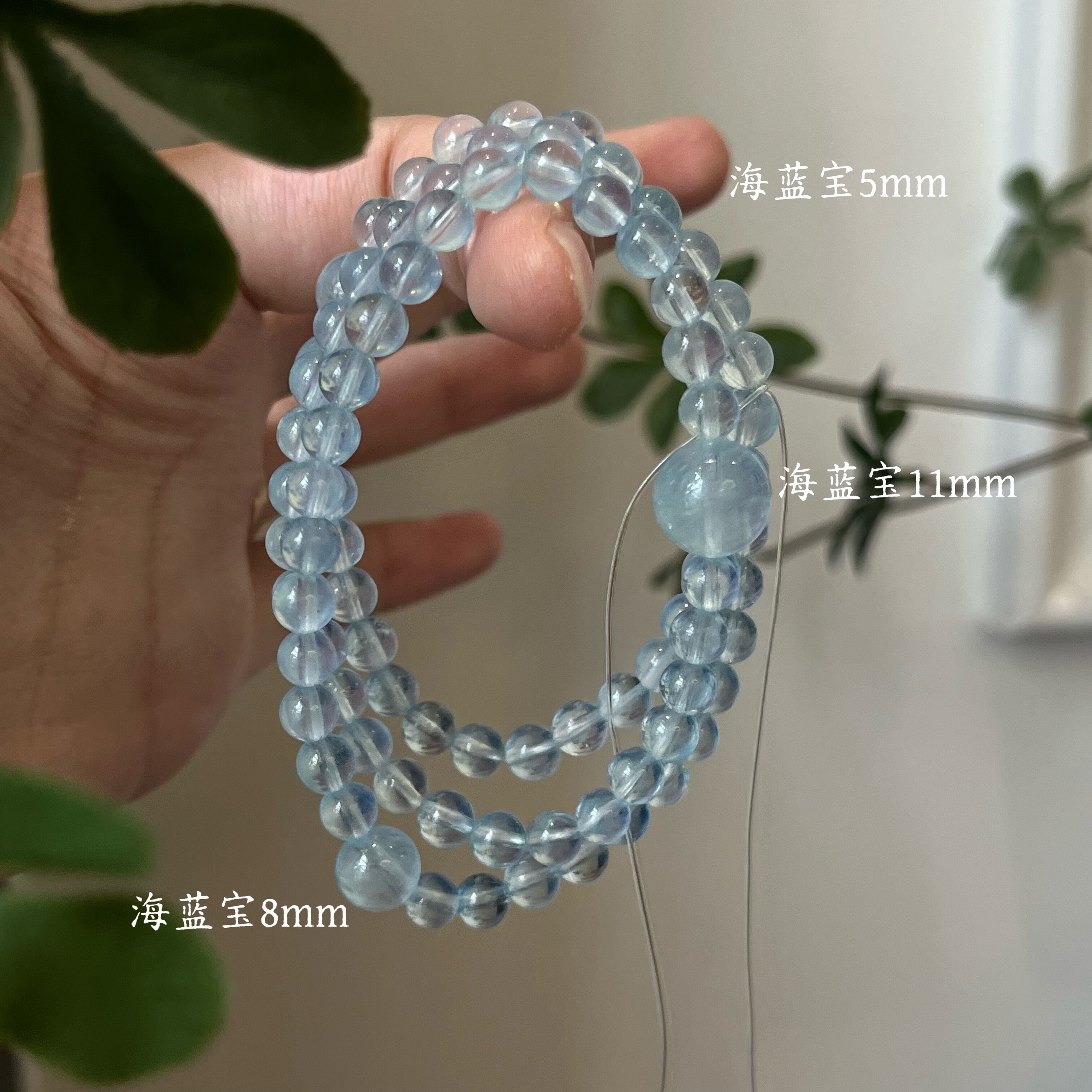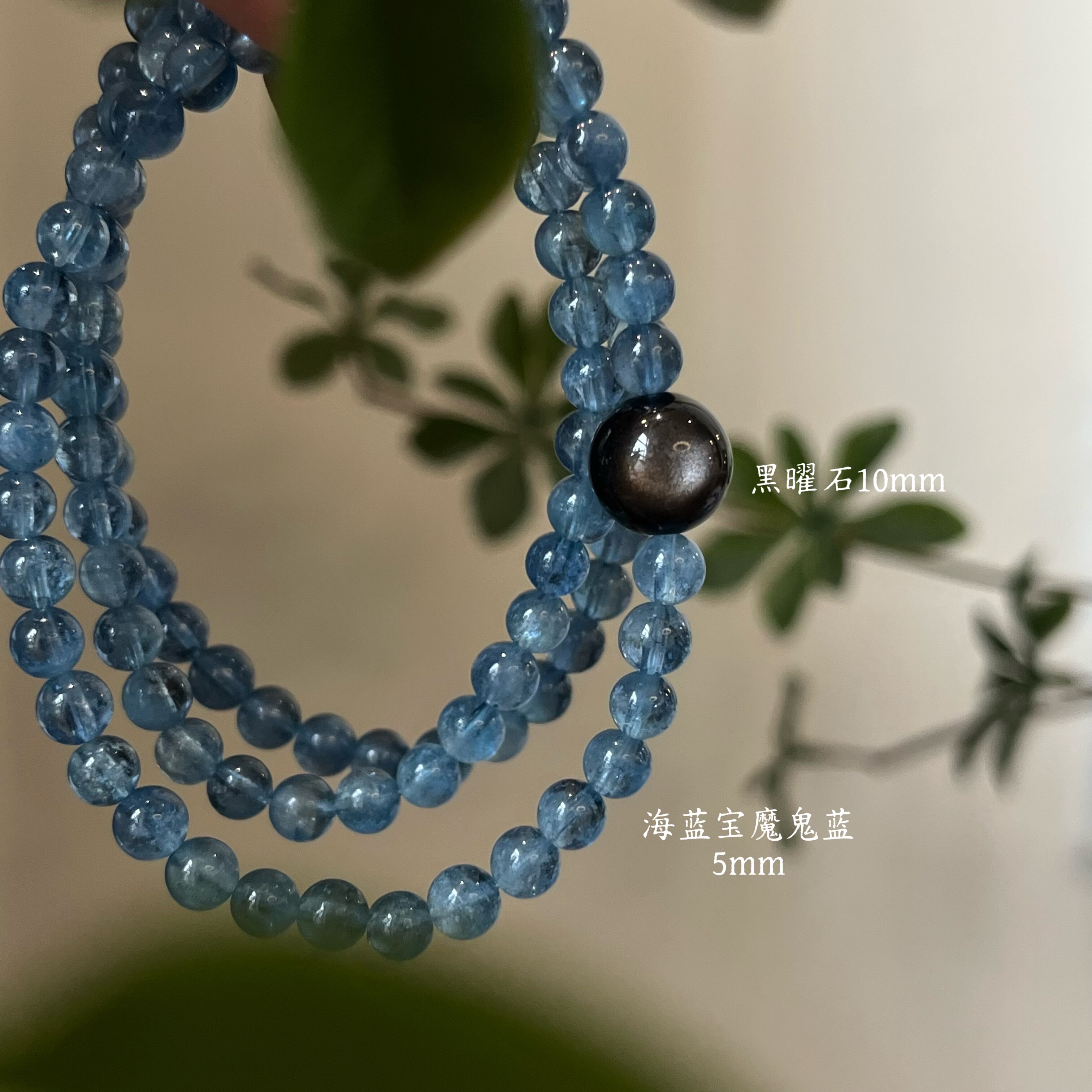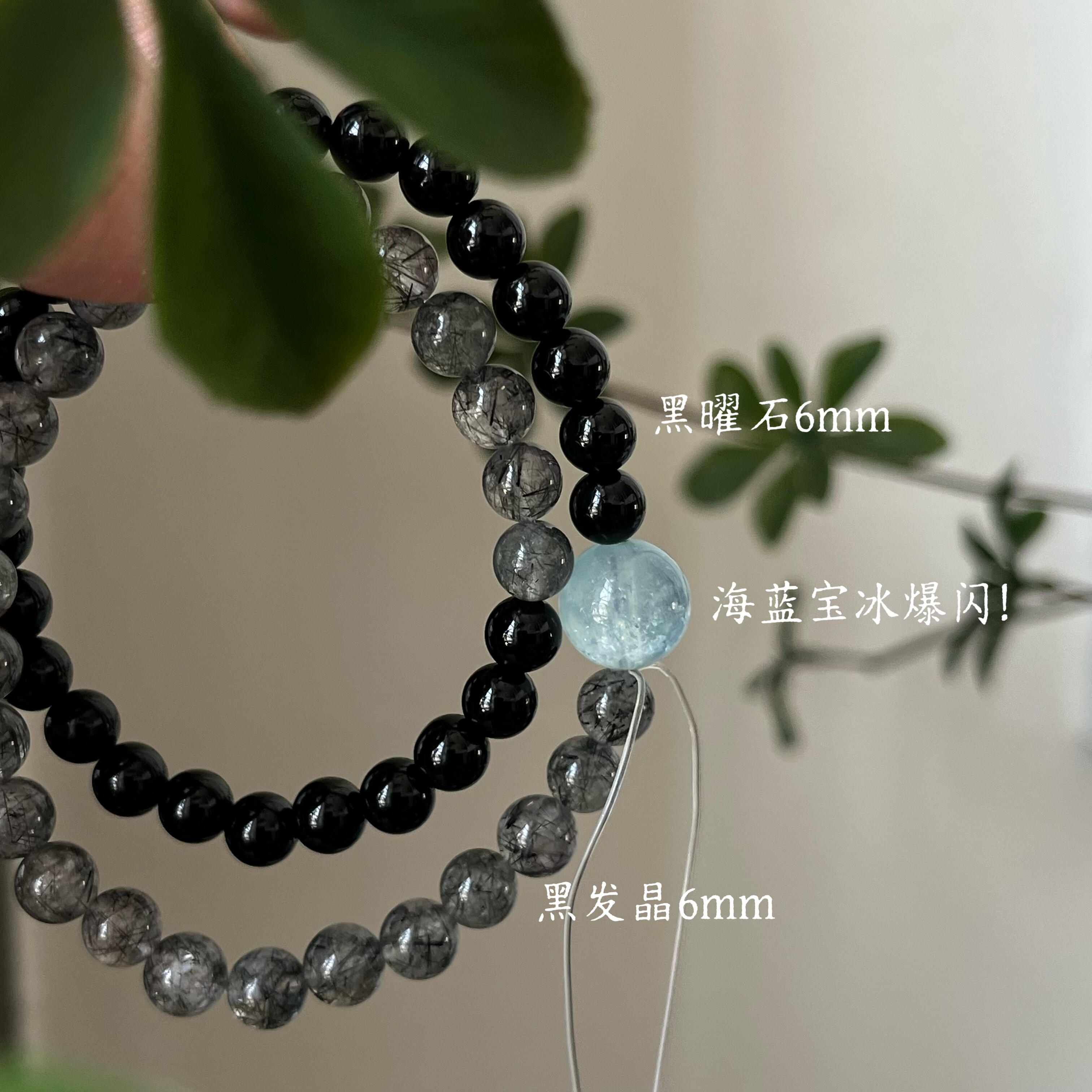 水-天然水晶黑发晶蓝晶石海蓝宝黑曜石手串招财五行喜水补水礼物