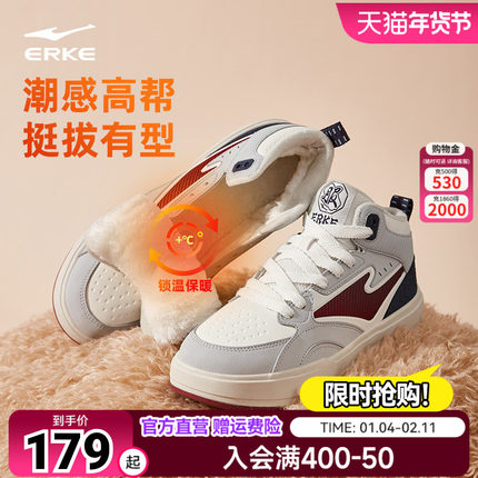 征服4鸿星尔克板鞋男鞋秋季新款高帮加绒棉鞋厚底鞋子休闲运动鞋