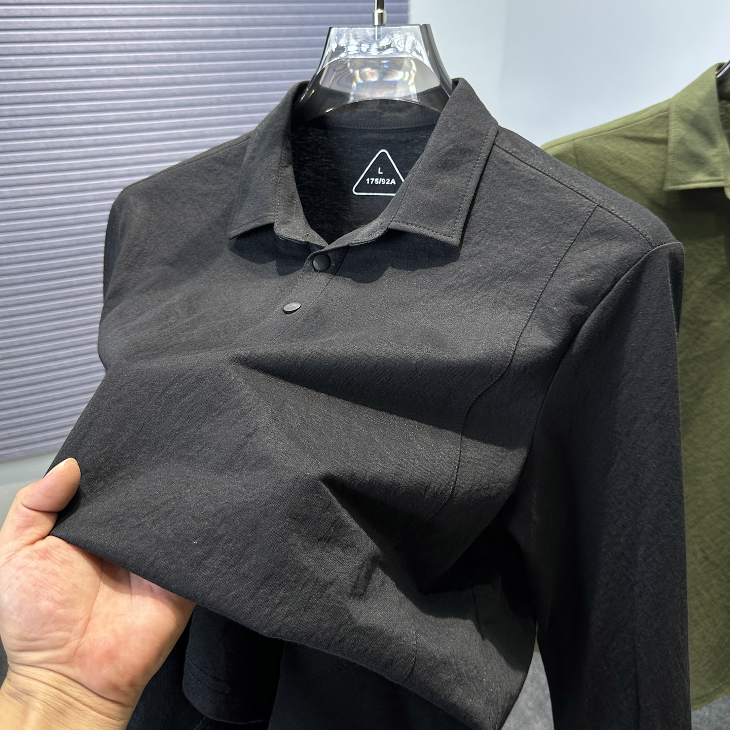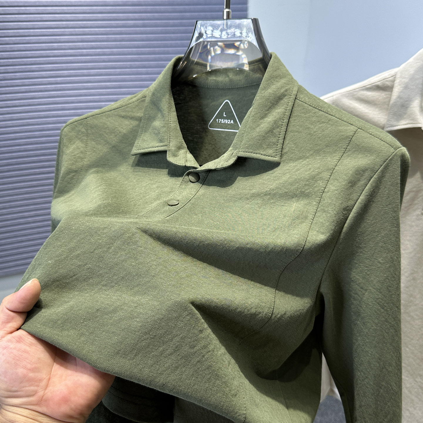 2025秋季男士棉麻翻领长袖t恤男纯色百搭秋装亚麻polo衫上衣开叉
