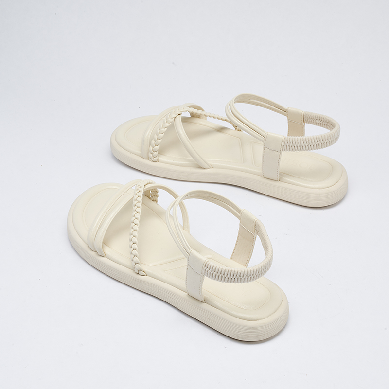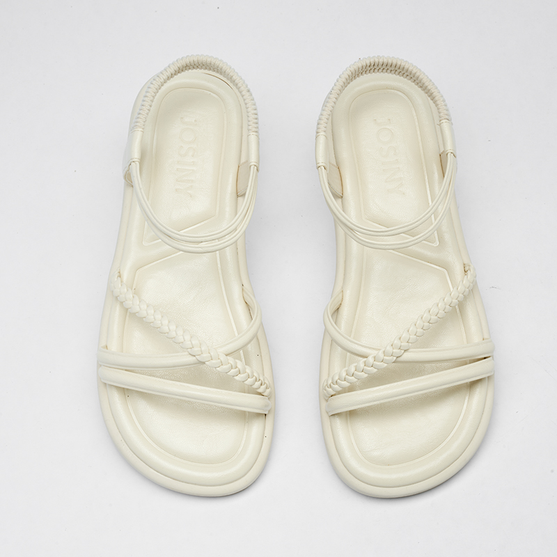 卓诗尼女凉鞋2025年新款女夏季舒适平底休闲凉鞋百搭软底交叉带潮