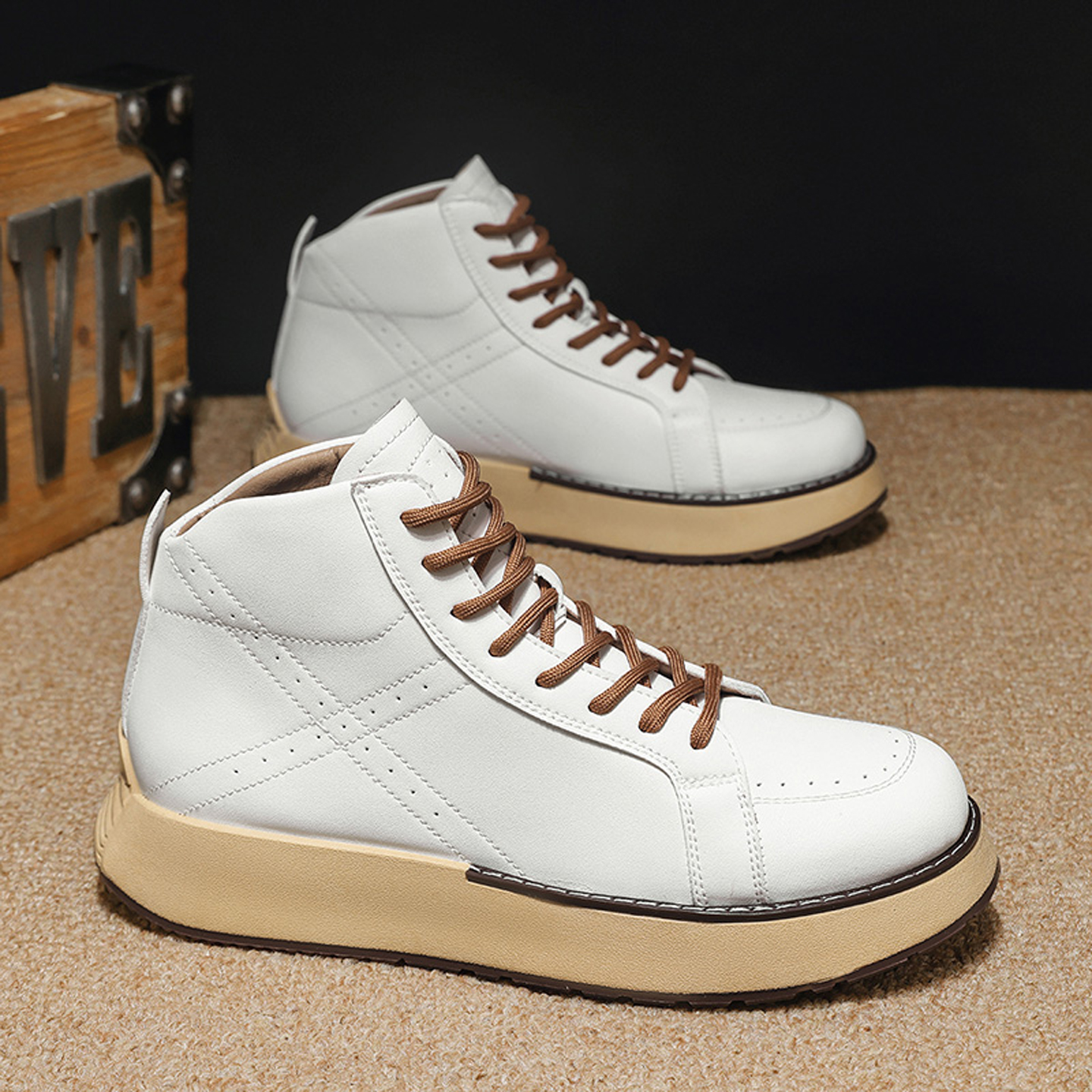 欧洲站男鞋2025秋季新款潮流百搭高帮运动鞋休闲皮鞋厚底中帮板鞋