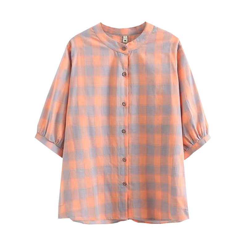 大码女装春夏装新款开衫五分袖衬衣中老年纯棉胖妈妈遮肉纯棉衬衫