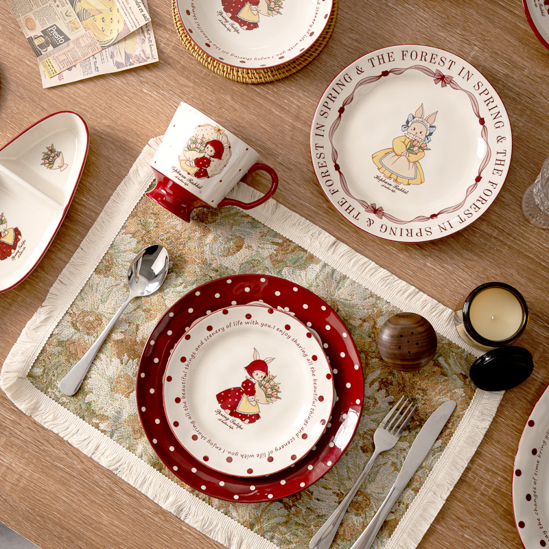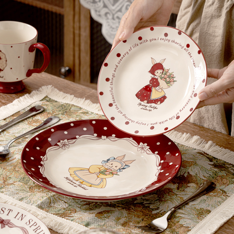赫本兔盘子家用菜盘2025新款陶瓷分格餐盘漂亮复古特别好看的鱼盘