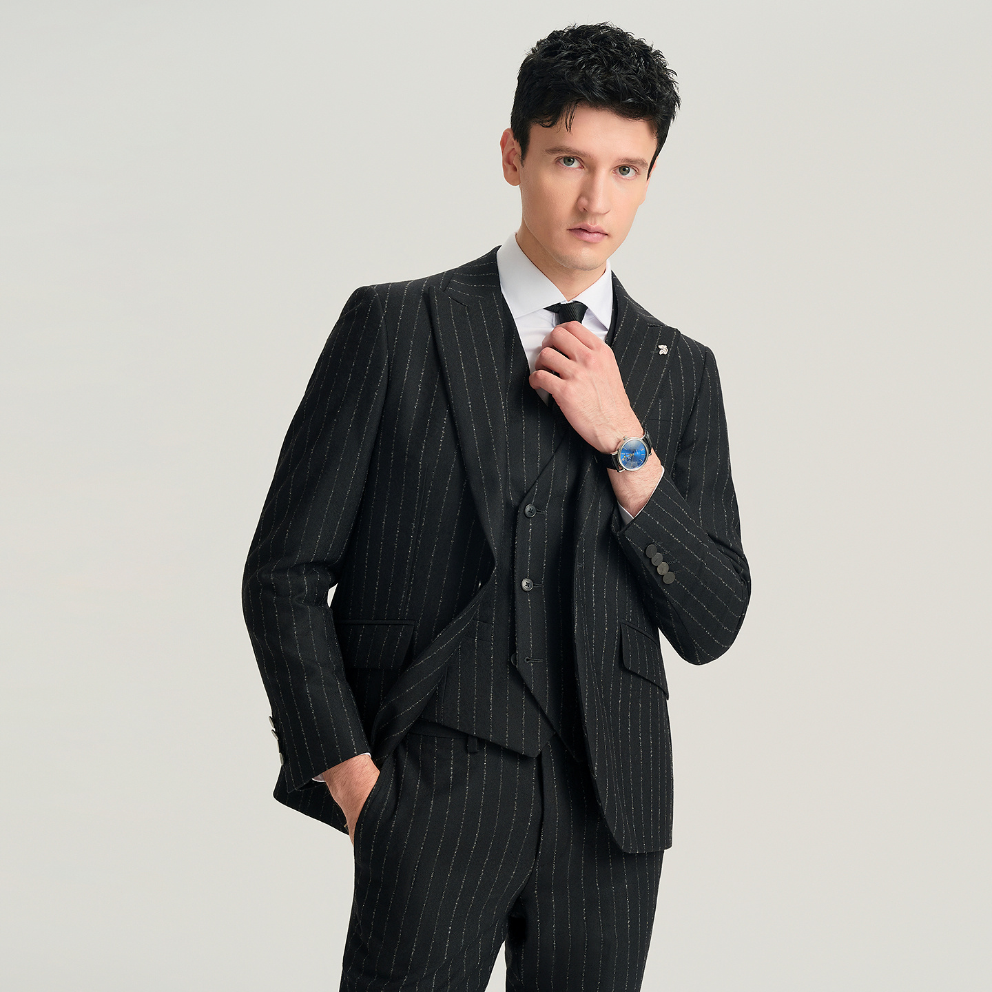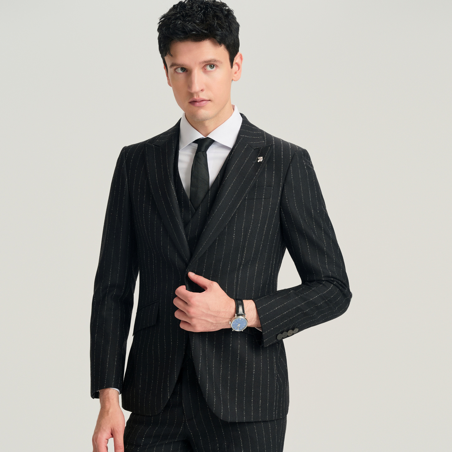 JODOLL乔顿商务正装西装外套修身条纹25年秋季高端结婚新郎西服男