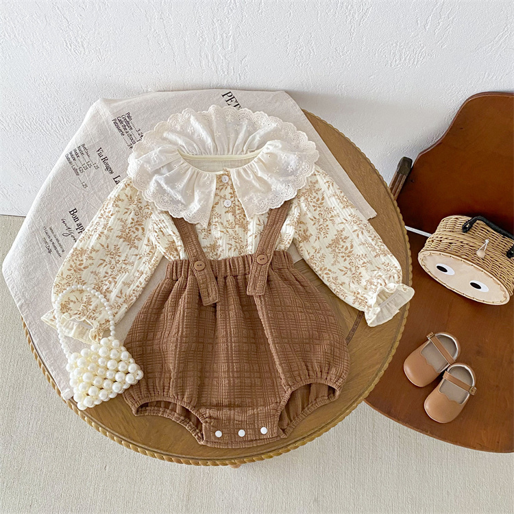婴儿韩版碎花背带裤哈衣套装