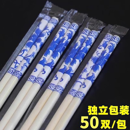 青花瓷一次性筷子批发商用家用饭店结婚专用高档卫生筷子独立包装