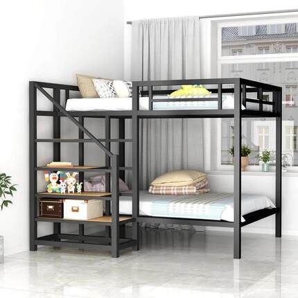 铁艺高架床公寓小户型多功能双层儿童上下床家用省空间双人铁床架