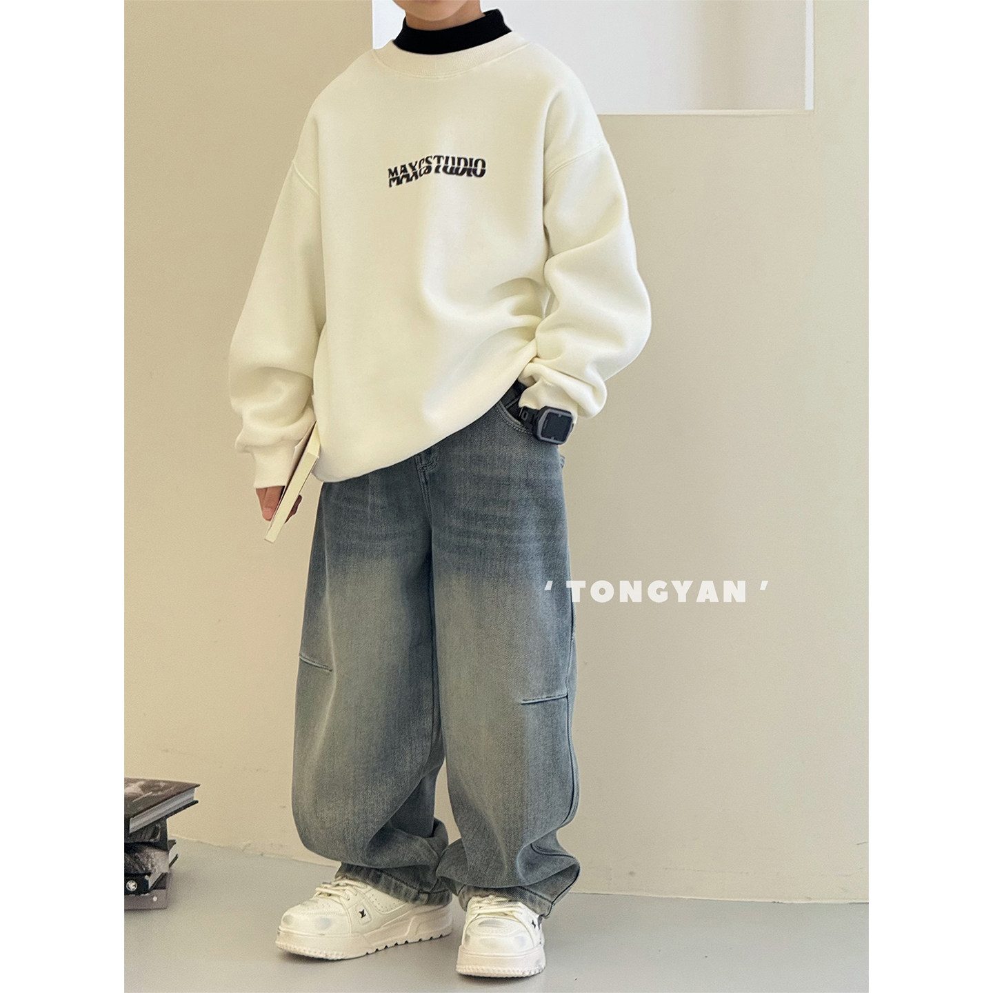 男童加绒裤子2025冬新款儿童牛仔裤厚潮酷男孩帅气中大童工装棉裤