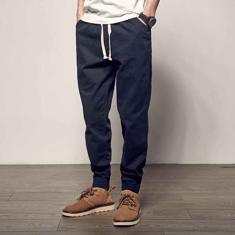 日系韩版修身小脚纯色休闲长裤