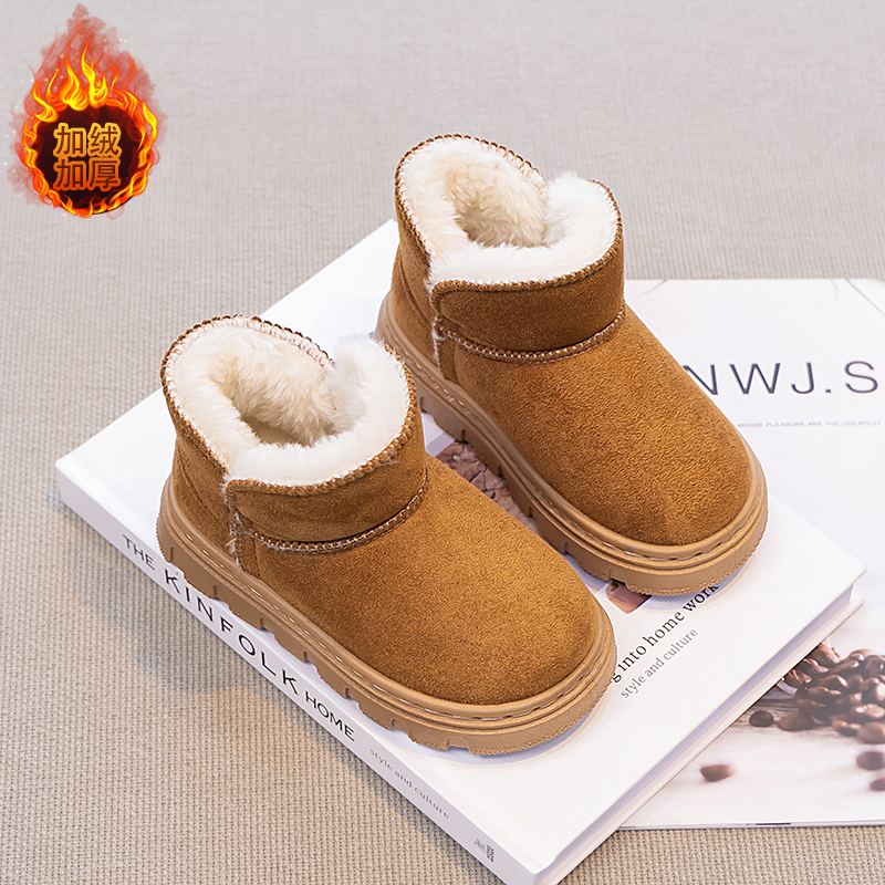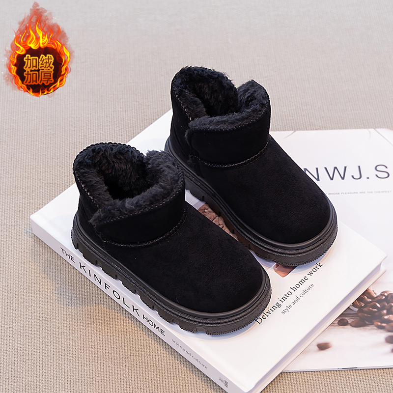 男女童宝宝加绒防滑套脚外穿保暖靴子2025年冬季新款简约雪地靴