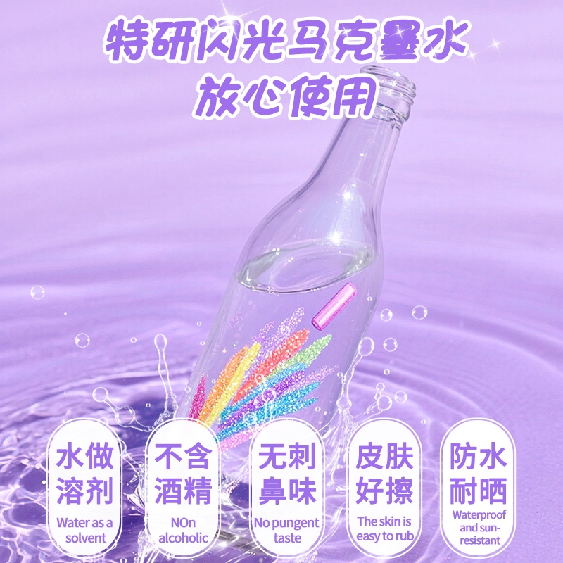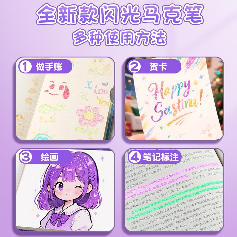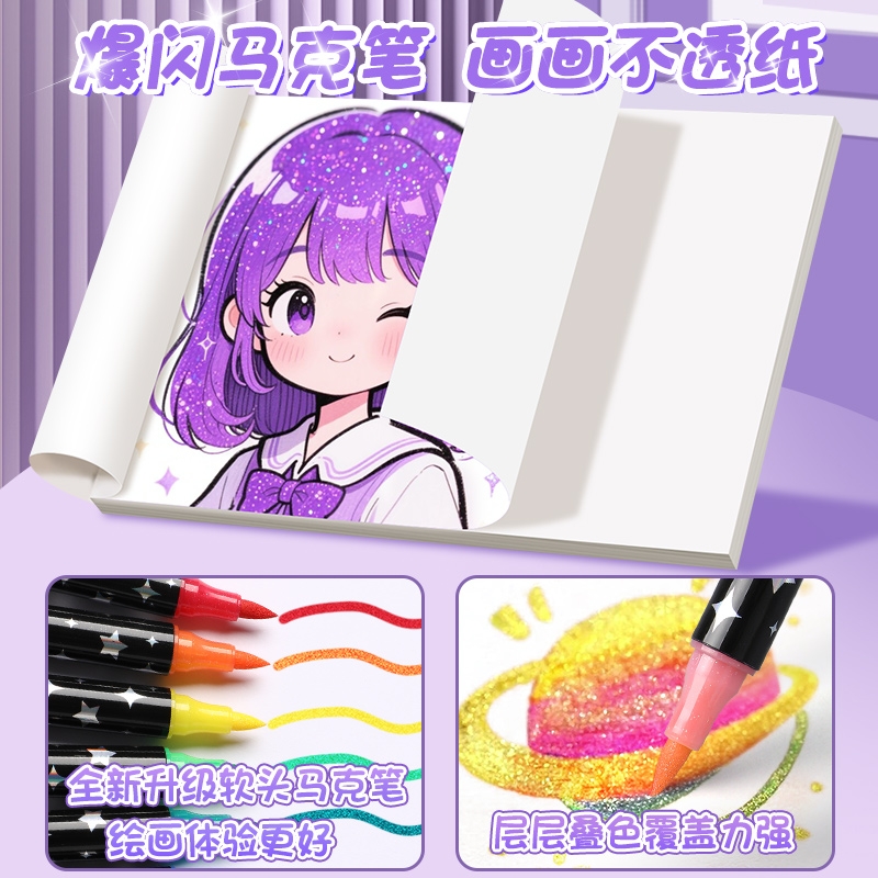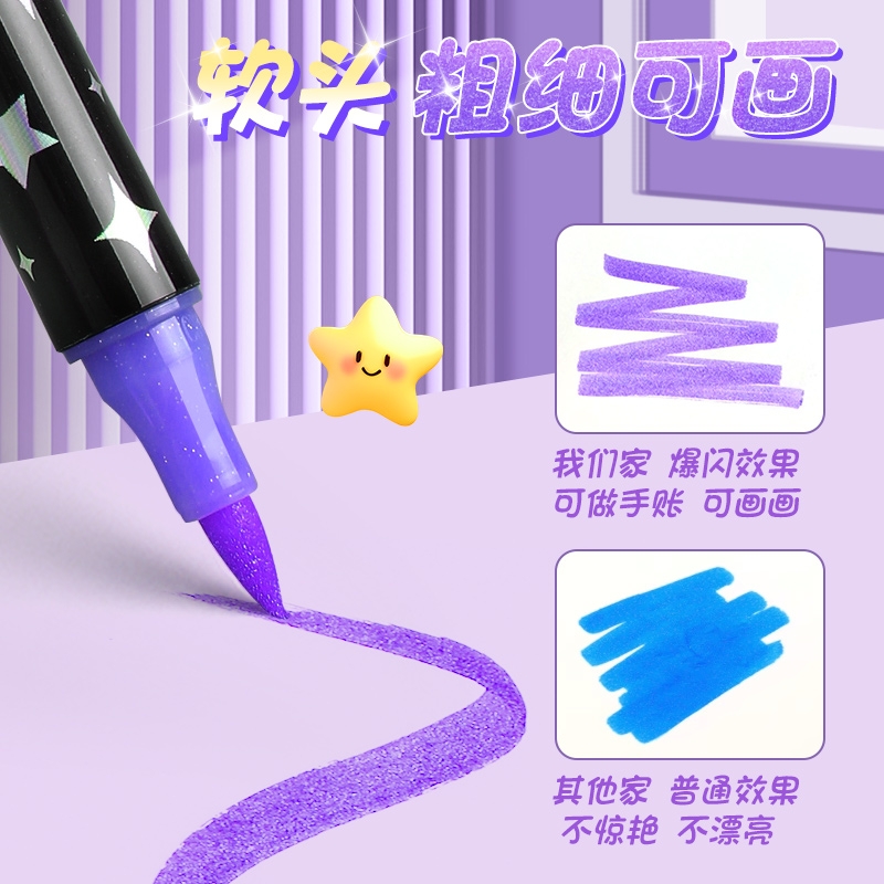 双头闪光丙烯马克笔软头绘画笔水彩笔小学生美术专用画笔2025新款荧光笔儿童无毒带闪粉幼儿园画画儿童手帐笔