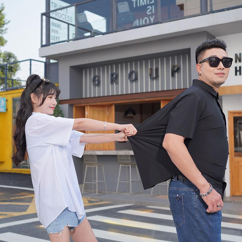 冰丝凉感男士短袖衬衫夏季高级感免烫抗皱衬衣休闲大码白色衣服