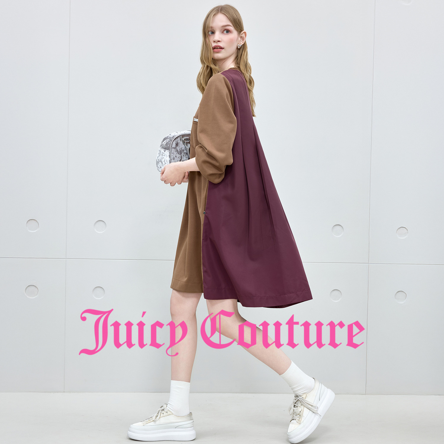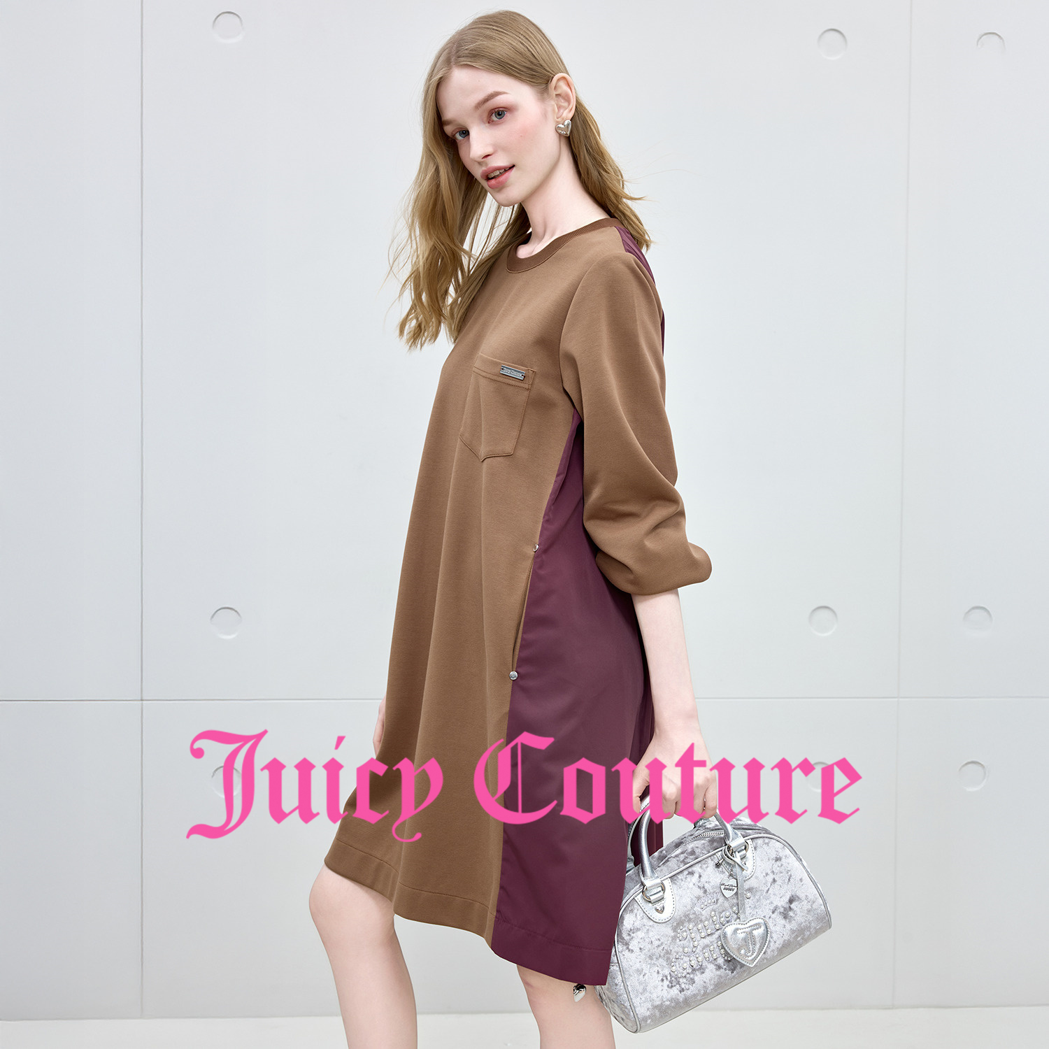 Juicy Couture橘滋连衣裙女2025年秋冬新款独特拼接长袖中长裙子