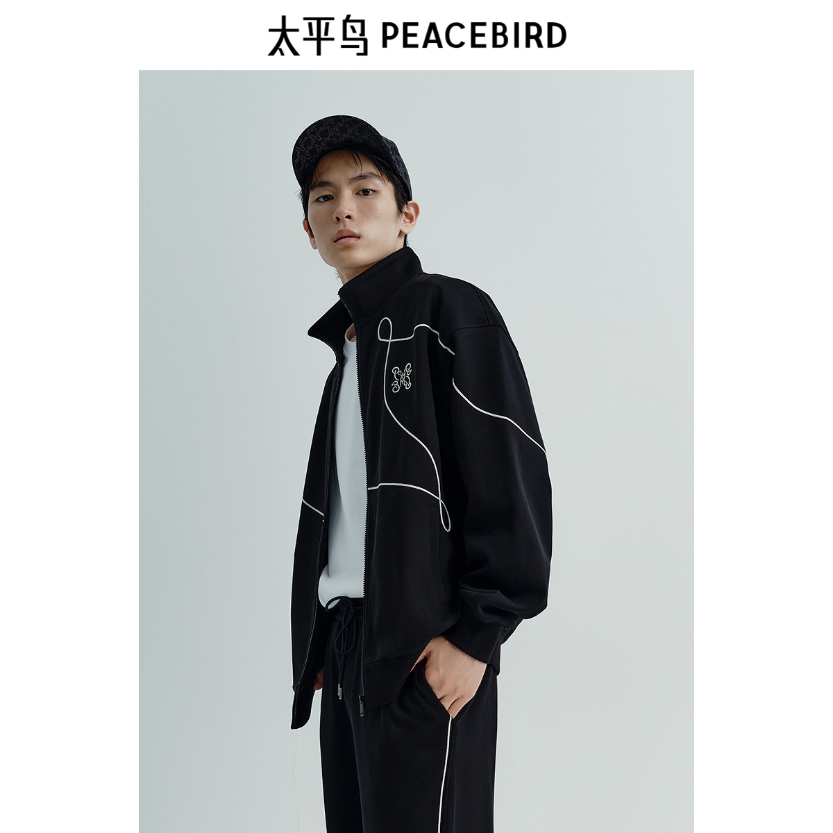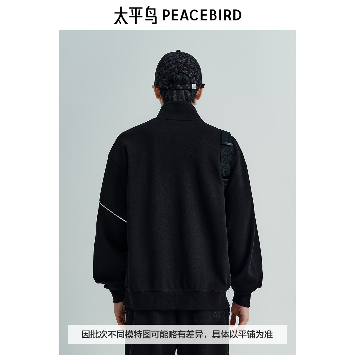 太平鸟男装 休闲卫衣男士时尚经典立领拉链卫衣撞色刺绣外套上衣