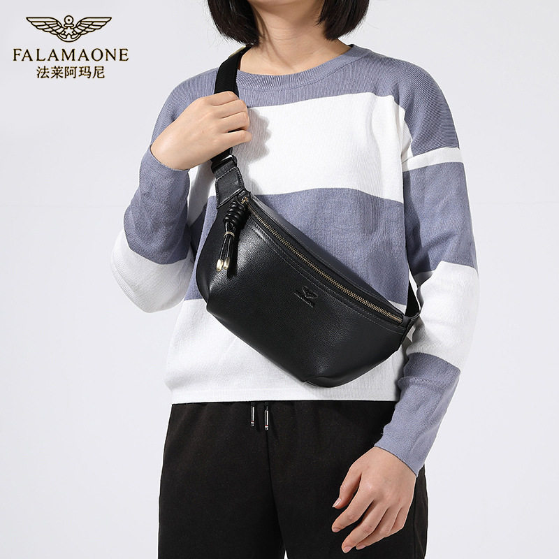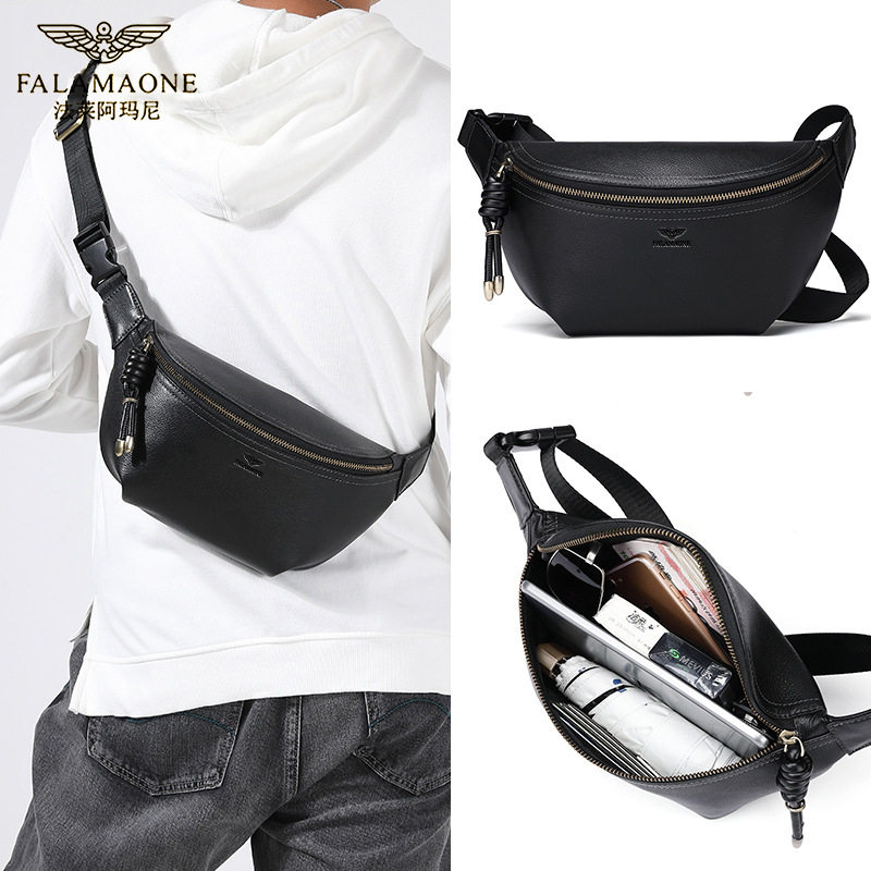 法莱阿玛尼正品真皮男士胸包头层牛皮轻奢单肩斜挎小背包头层牛皮