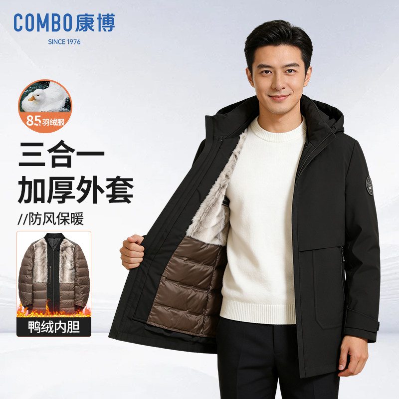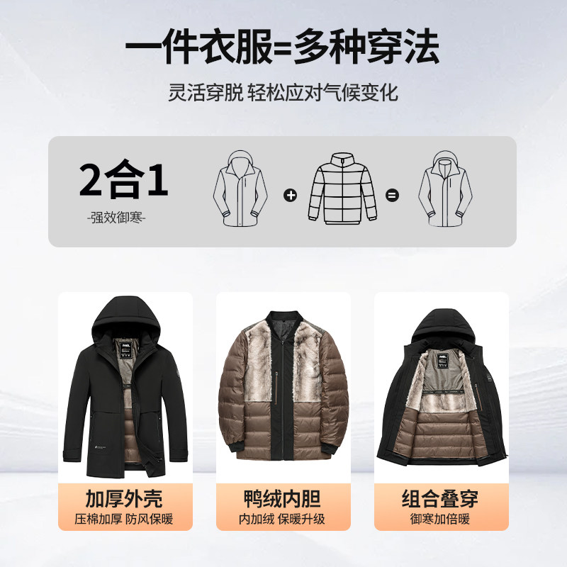 康博羽绒服男可拆卸内胆含羊毛冬季新款商务休闲中年爸爸保暖外套