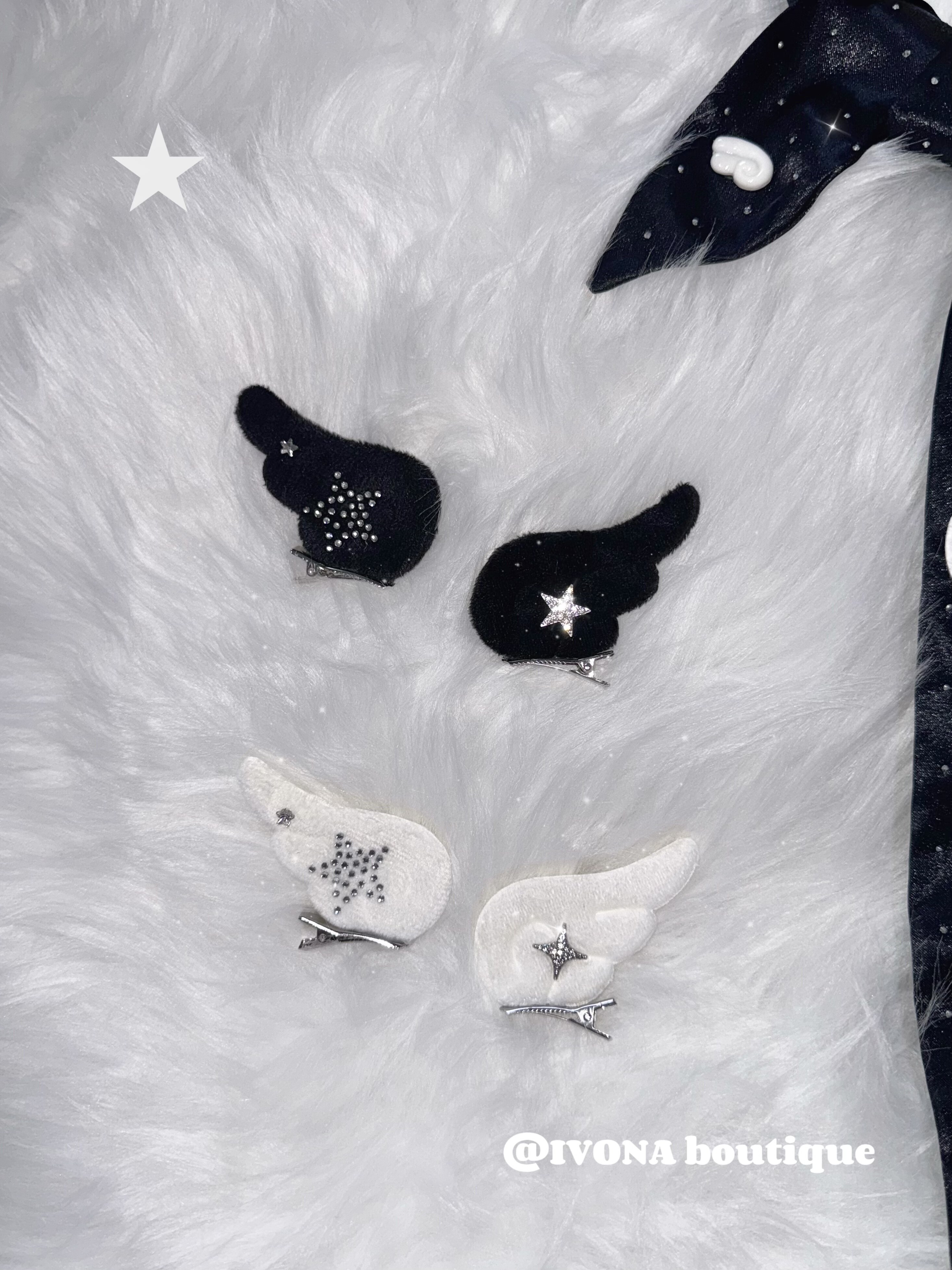 IVONA【星光天使^】原创diy可爱少女y2k小众设计毛绒翅膀发夹配饰
