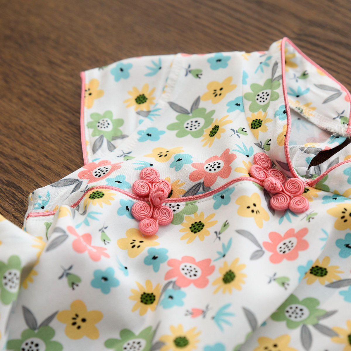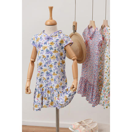 反季特 儿童人棉连衣裙 碎花旗袍裙子 包肩背心裙 中大童 夏款
