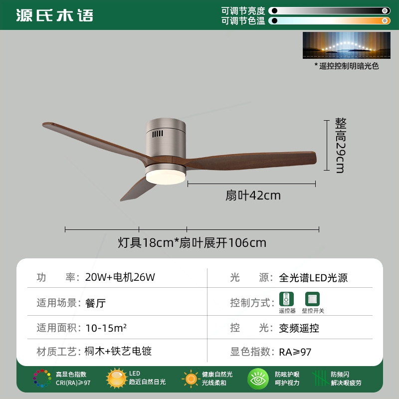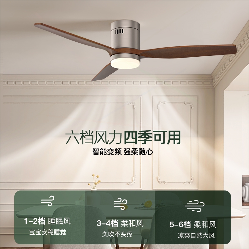 风扇吊灯源氏木语实木吊扇灯2025年新款客厅餐厅简约静音胡桃木色