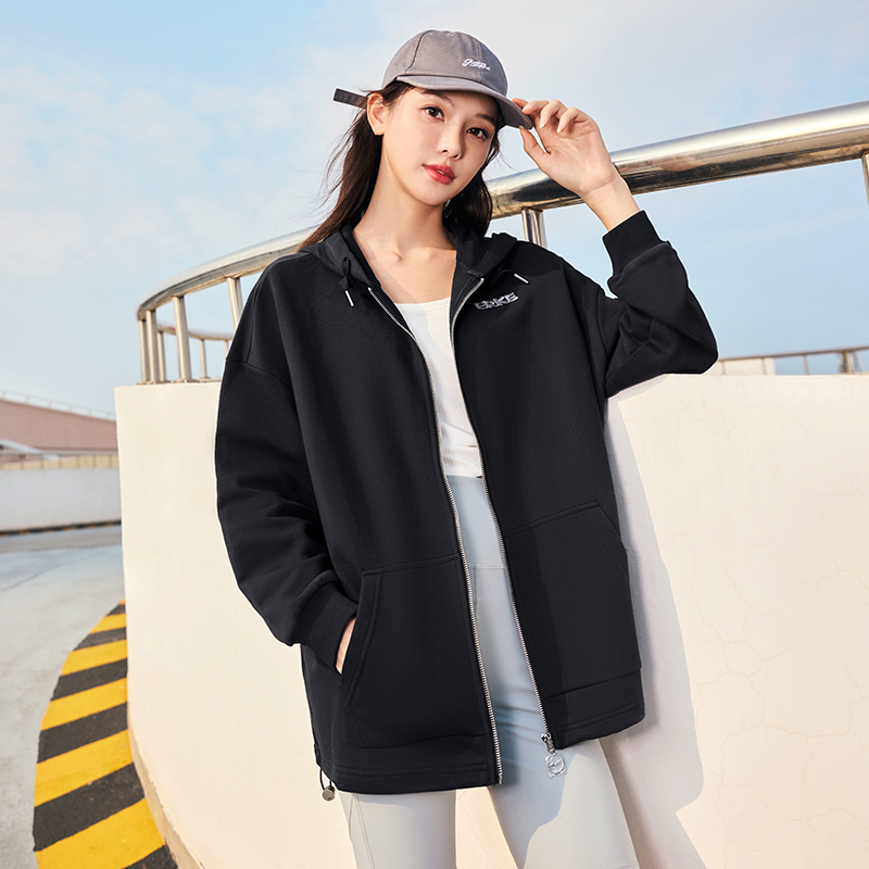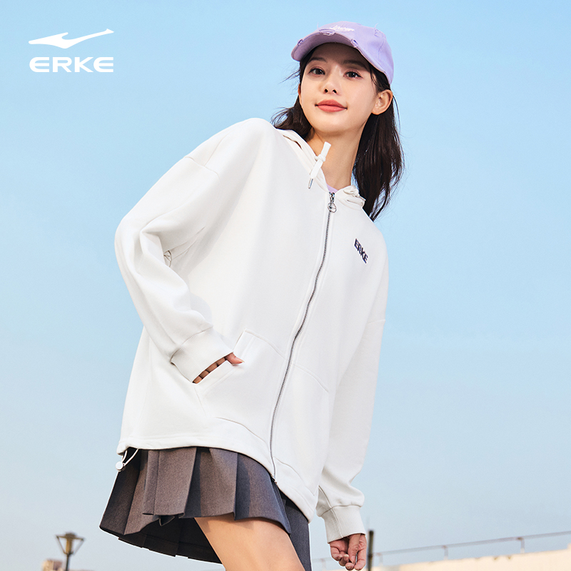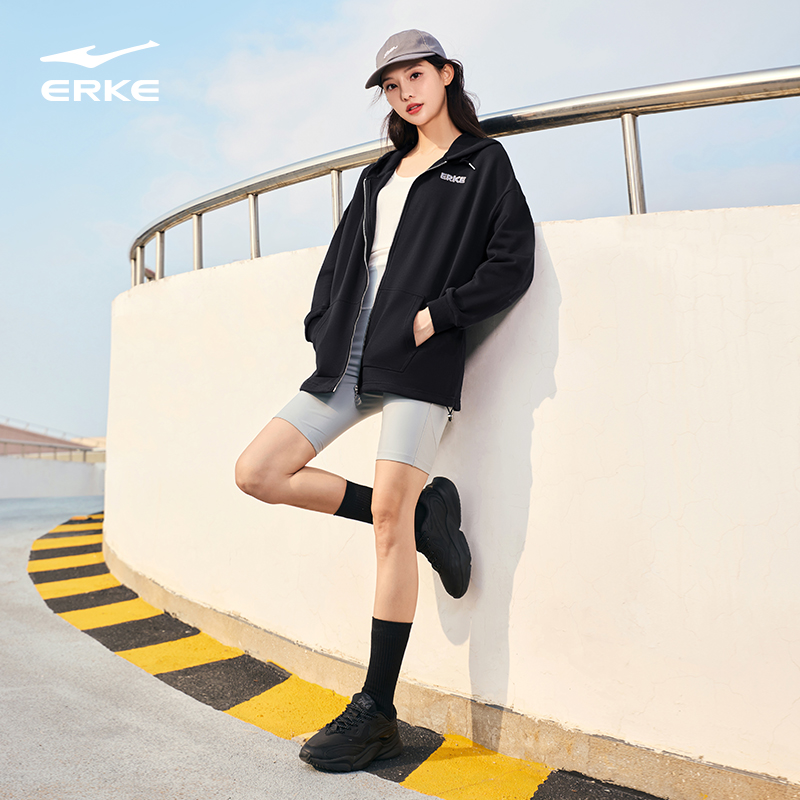 电池熊猫丨鸿星尔克开衫卫衣女秋季新款女士运动连帽针织外套