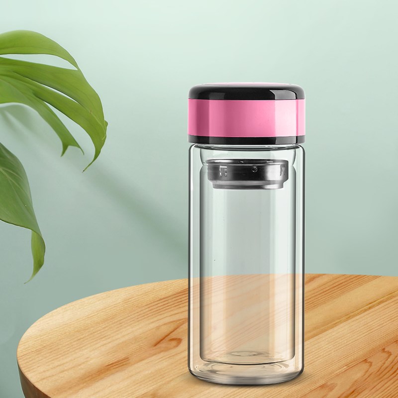 极速双层女e玻璃杯e加厚隔热大小款可携式迷你办公茶杯礼品广告杯