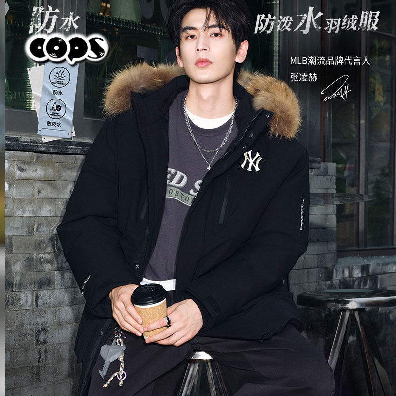 MLB鹅绒派克服男女情侣装新款张凌赫同款加厚保暖羽绒服3ADJB0656