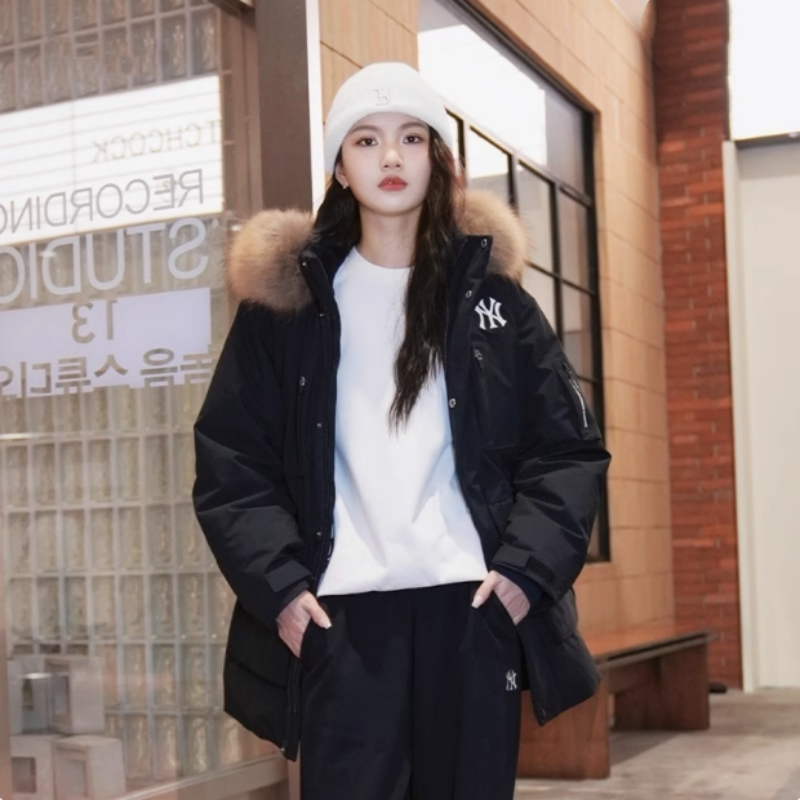 NY冬季新款连帽毛领羽绒服