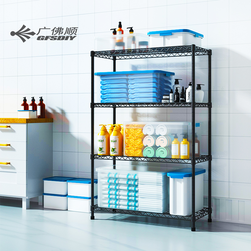 新款浴室置物架4层落地s毛巾浴巾收纳洗发水收纳架衣物储物箱架子
