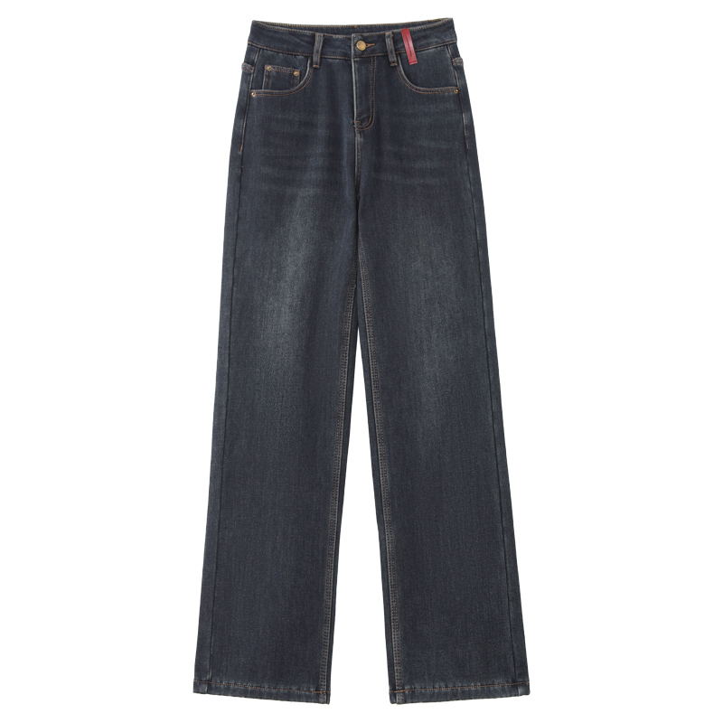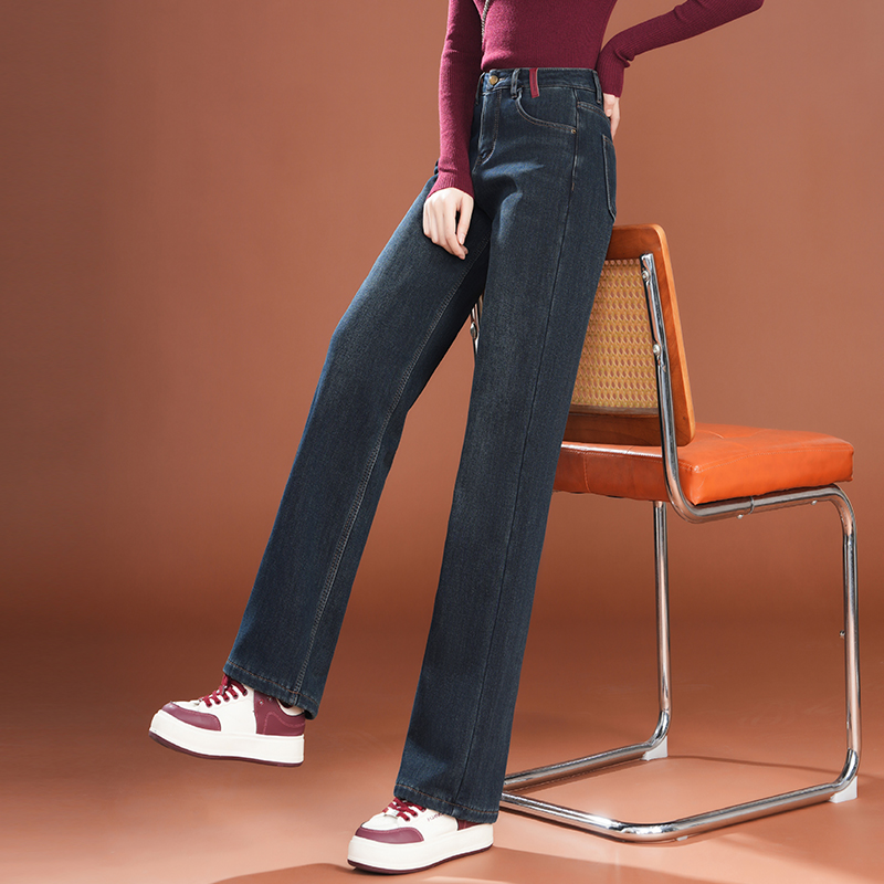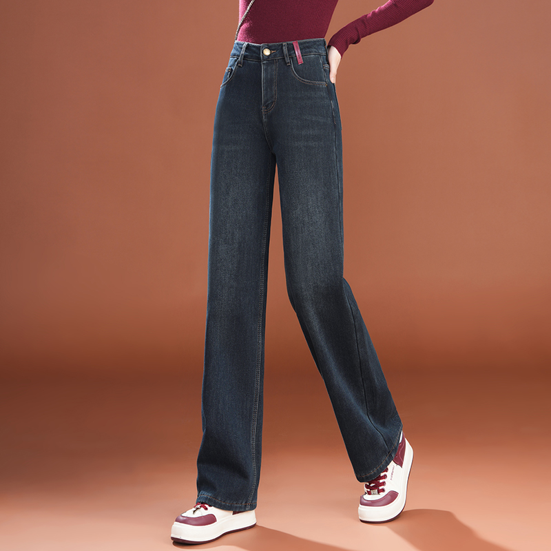 复古蓝灰色窄版阔腿裤冬季新款加绒加厚直筒裤高腰显瘦显腿长女裤