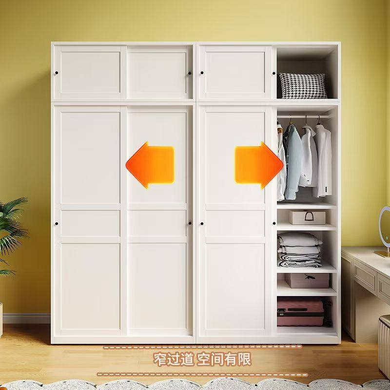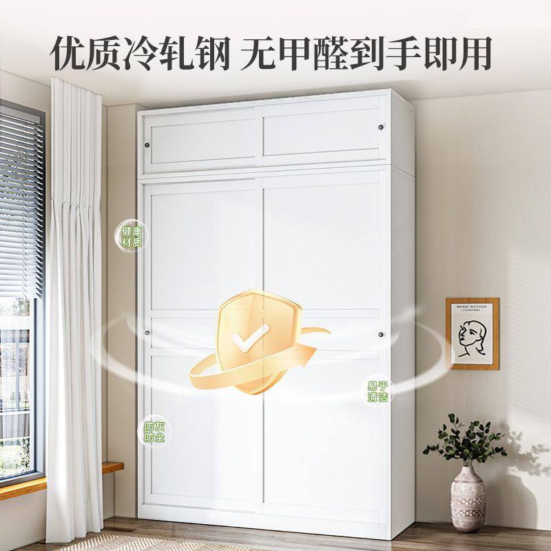 推拉门衣柜钢制家用简易金属出租房小户型卧室衣橱铁衣柜加深60cm