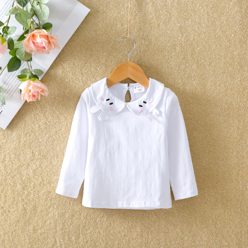 女童t恤女上衣女宝宝小衫纯棉娃娃领童装春秋长袖白色儿童打底衫