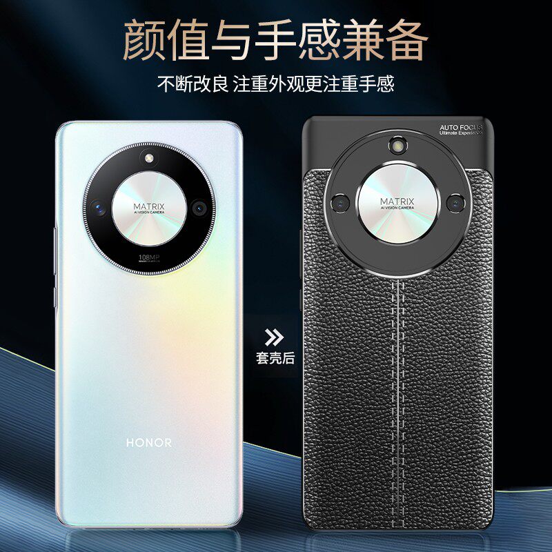 适用荣耀x50手机壳ALI一AN00保护套防摔全包外壳Honor X50磨砂皮纹硅胶软手机套X5O新款男女士商务ANOO壳送膜
