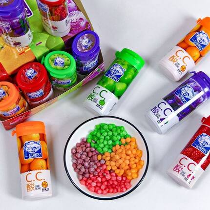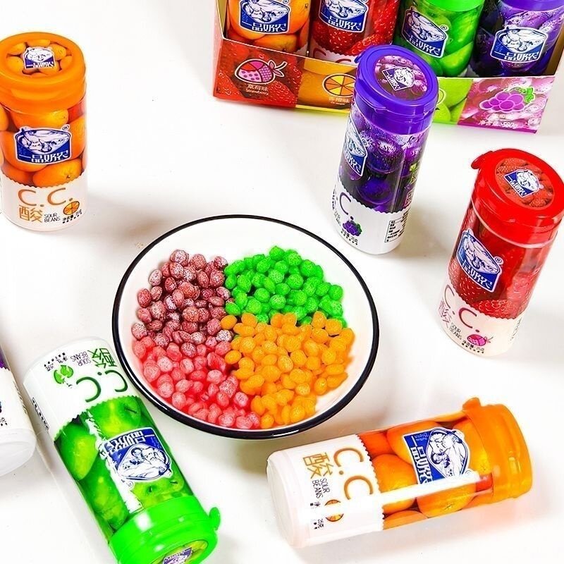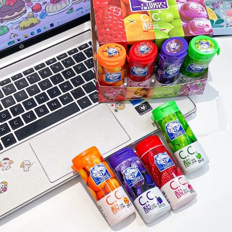 一品奶农CC酸瓶装草莓味葡萄味酸酸甜甜彩色糖果怀旧解馋零食整盒