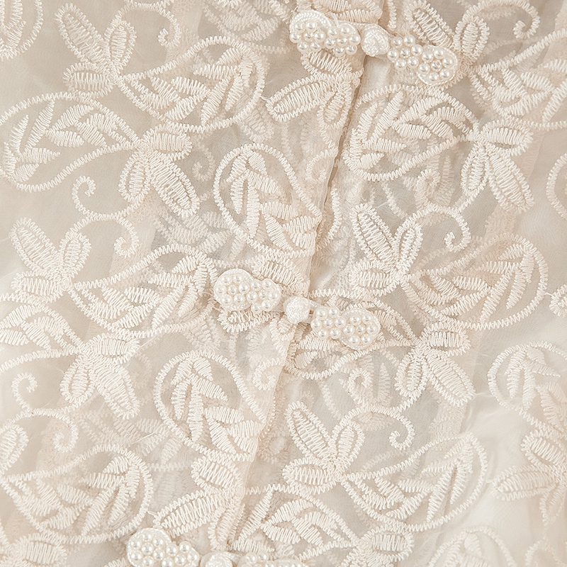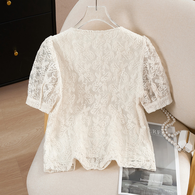 她池温柔风短袖蕾丝刺绣圆领衬衫