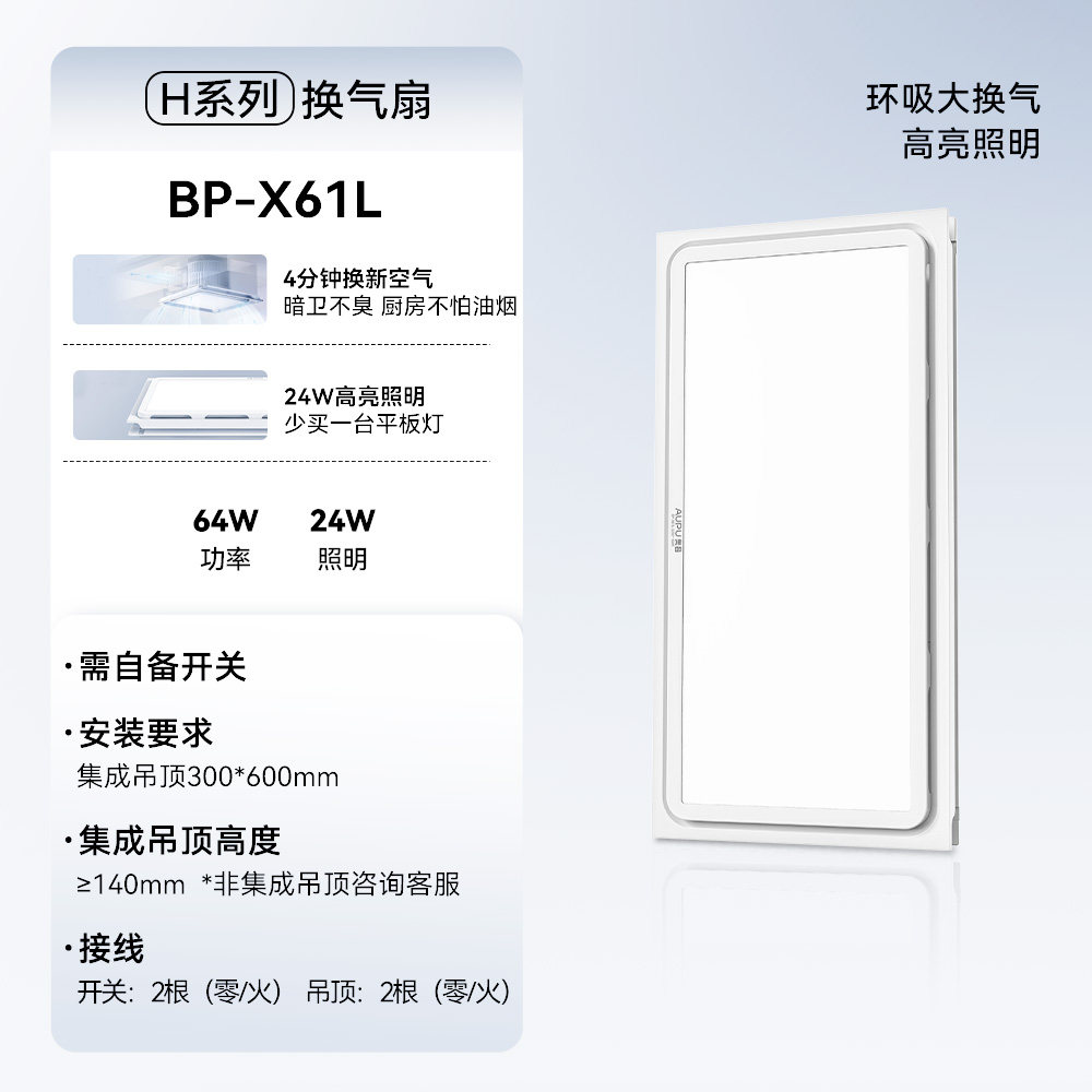 奥普换气扇BP-X61L环吸大换气通风高亮照明集成吊顶(需自备开关)