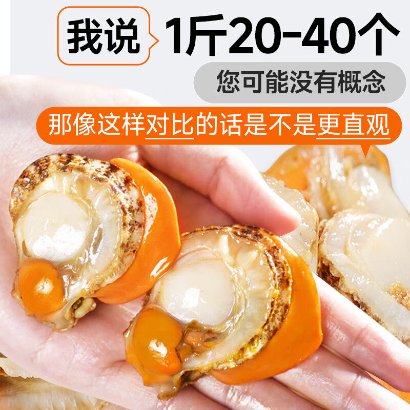 新鲜冷冻超大个扇贝肉海鲜红贝烧烤商用蒜蓉粉丝无冰衣扇贝肉5斤