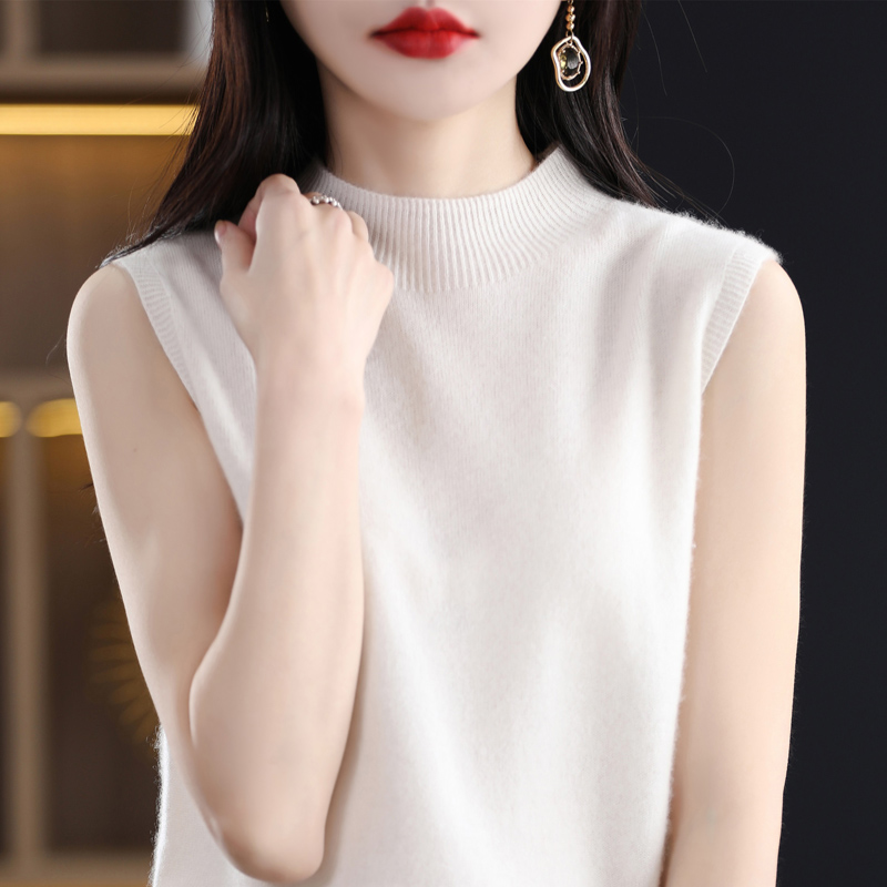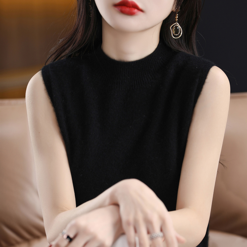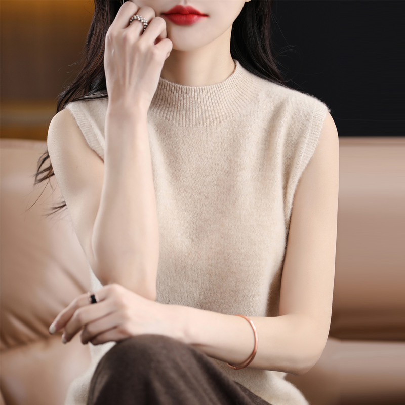春秋2023新款纯羊毛背心女内搭无袖毛衣半高领打底衫简约针织坎肩