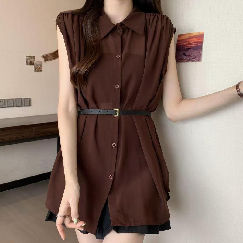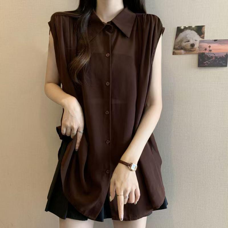 大码微胖mm中长款遮屁股雪纺上衣女夏季收腰显瘦正肩百搭气质衬衫