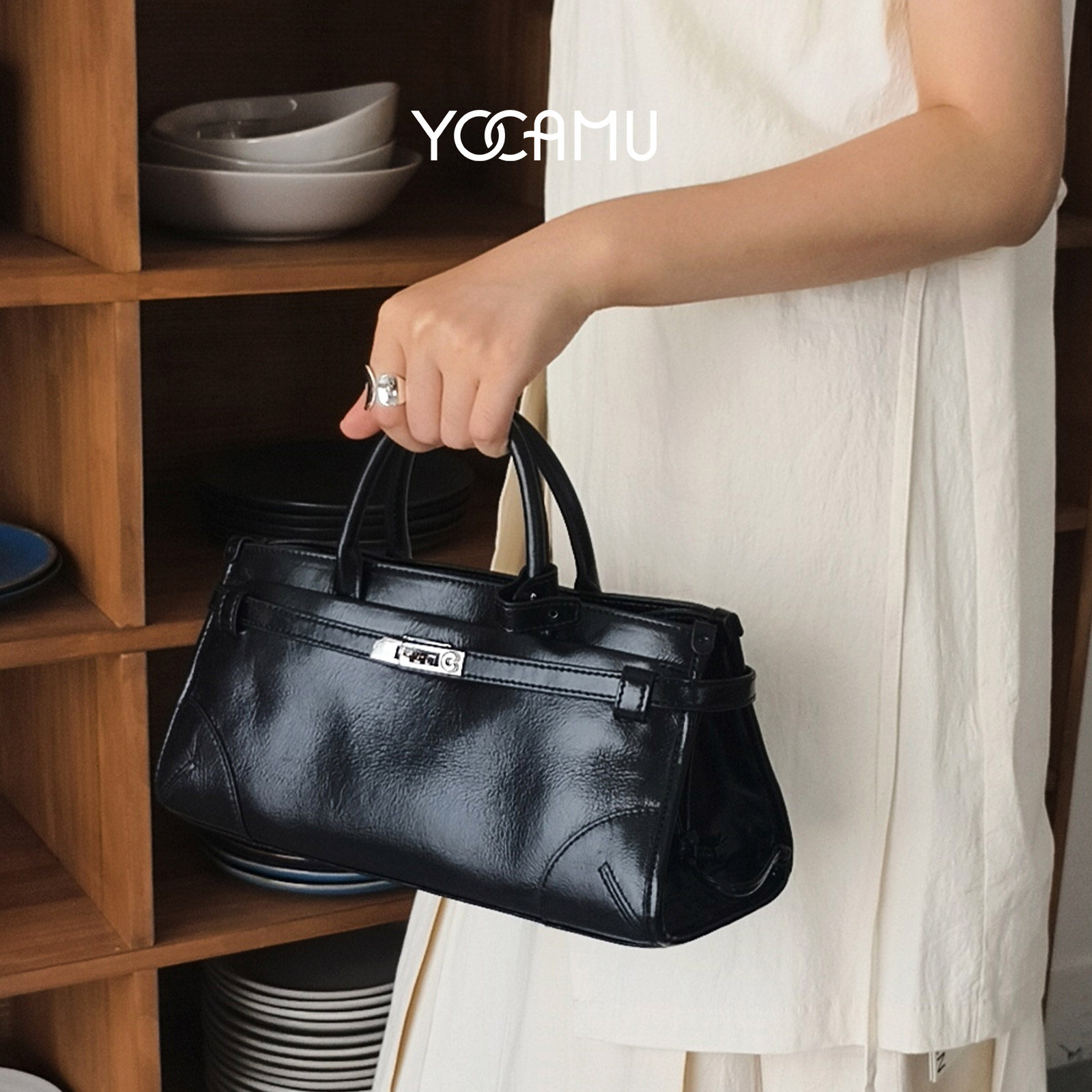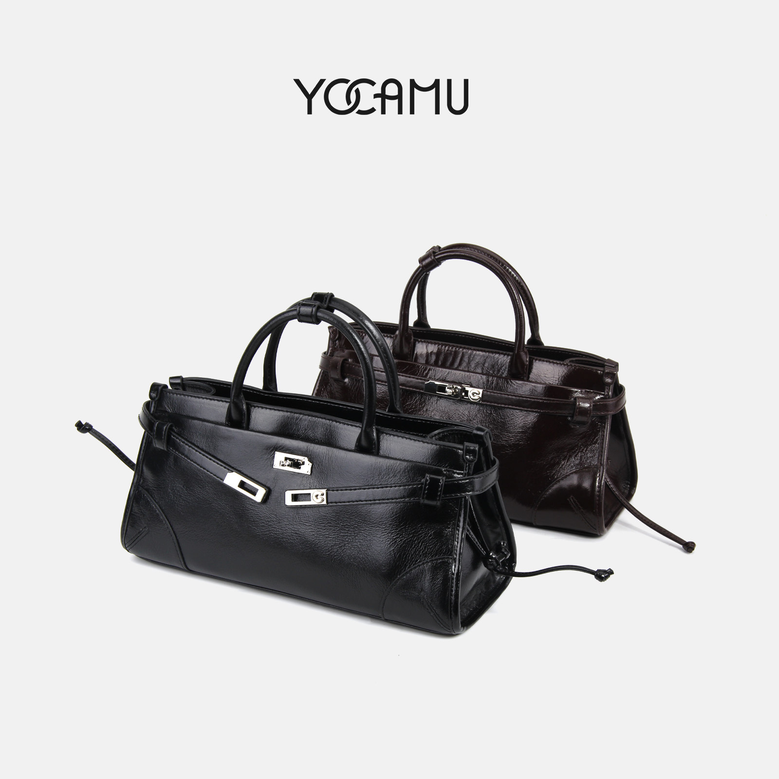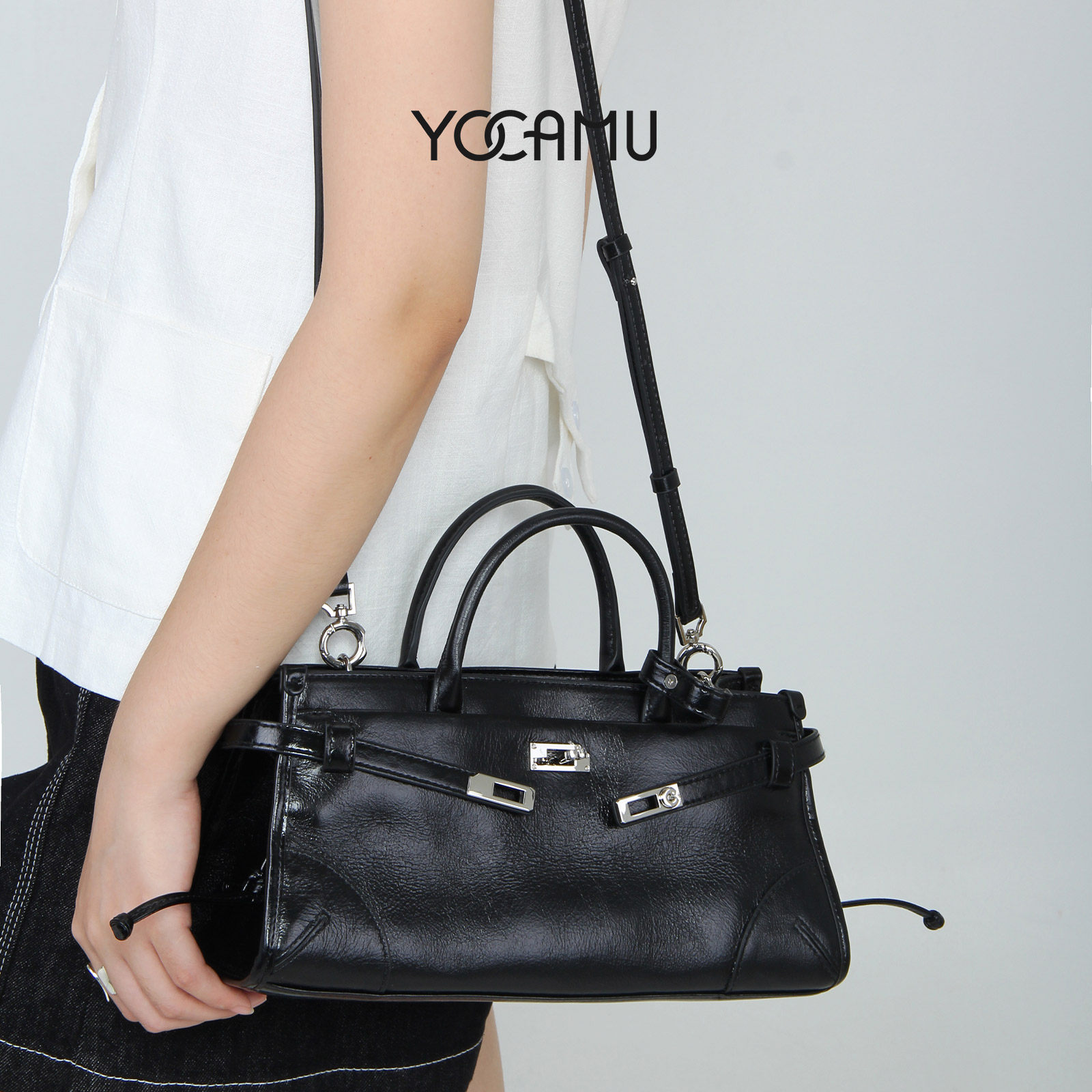 YOCAMU牛皮凯莉包2026新款真皮高级感手提包女百搭通勤单肩斜挎包