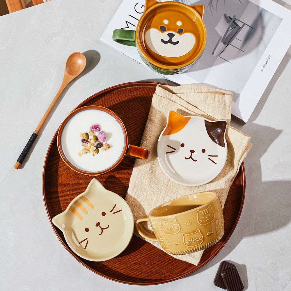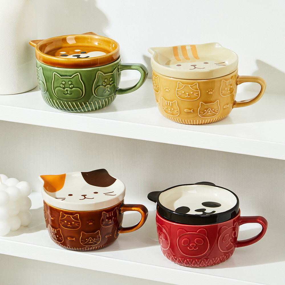 墨色日式卡通马克杯带盖陶瓷