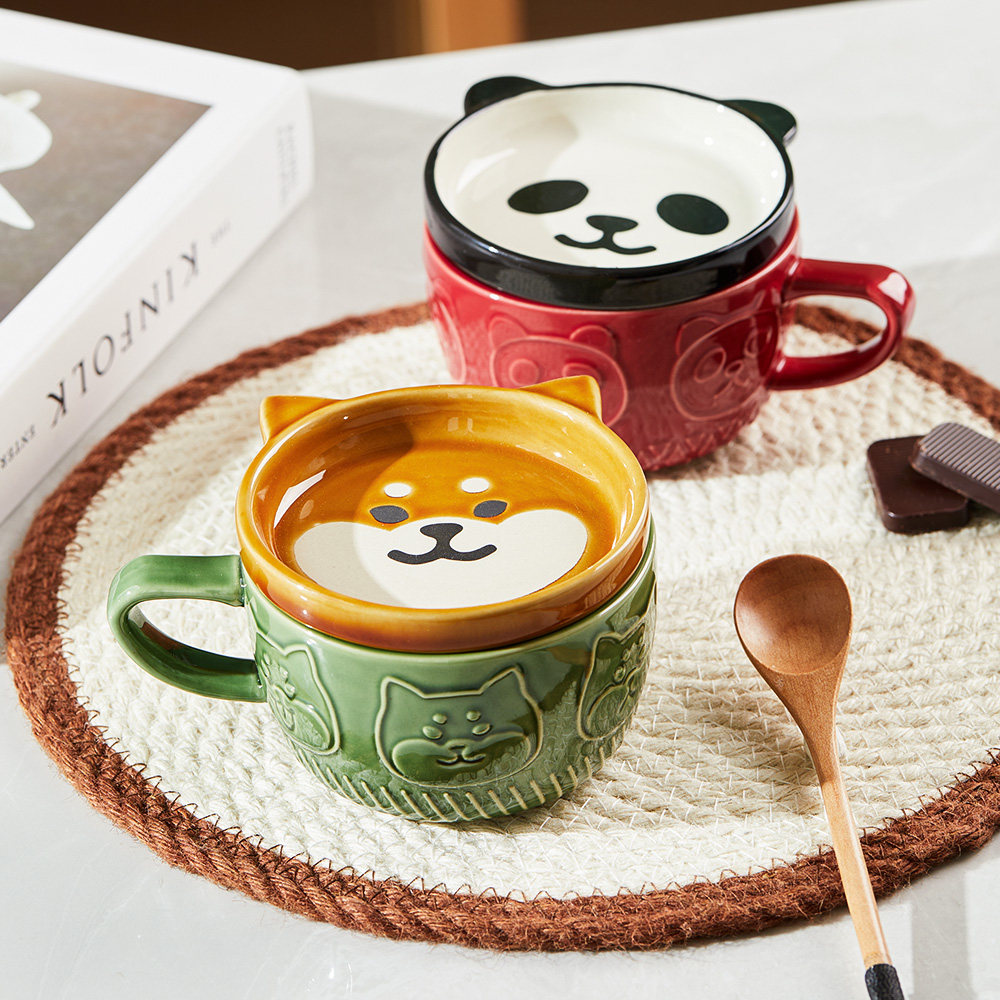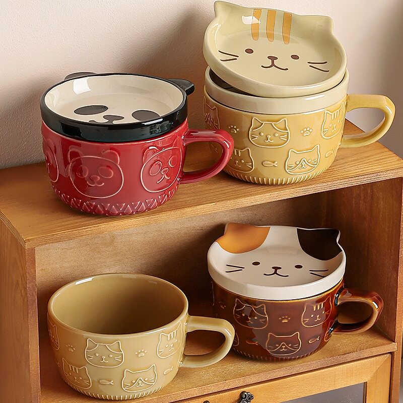 可爱陶瓷马克杯带盖的杯子女生咖啡杯喝水杯牛奶燕麦杯早餐杯男生