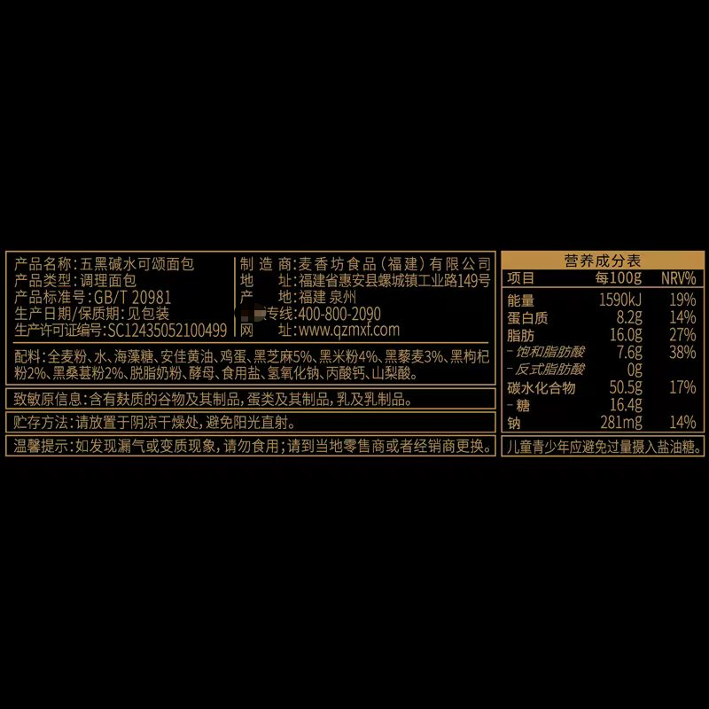 味出道五黑碱水可颂牛角包360g手撕面包糕点网红零食健身代餐