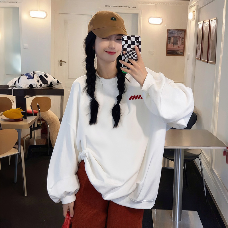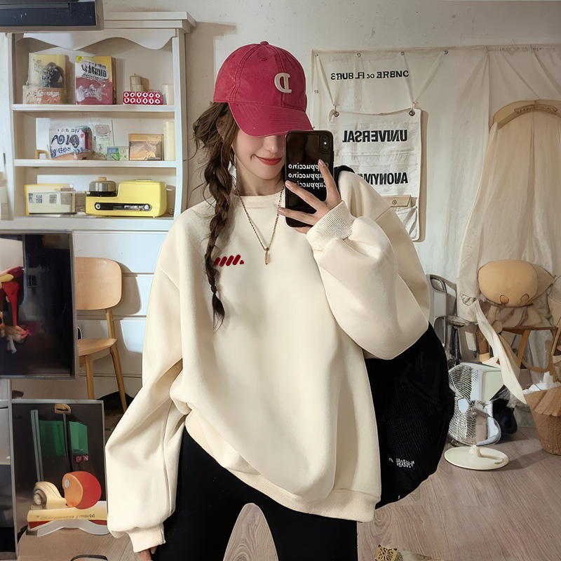 山东即墨正品秋冬季圆领卫衣女学生小个子宽松慵懒风加绒加厚上衣
