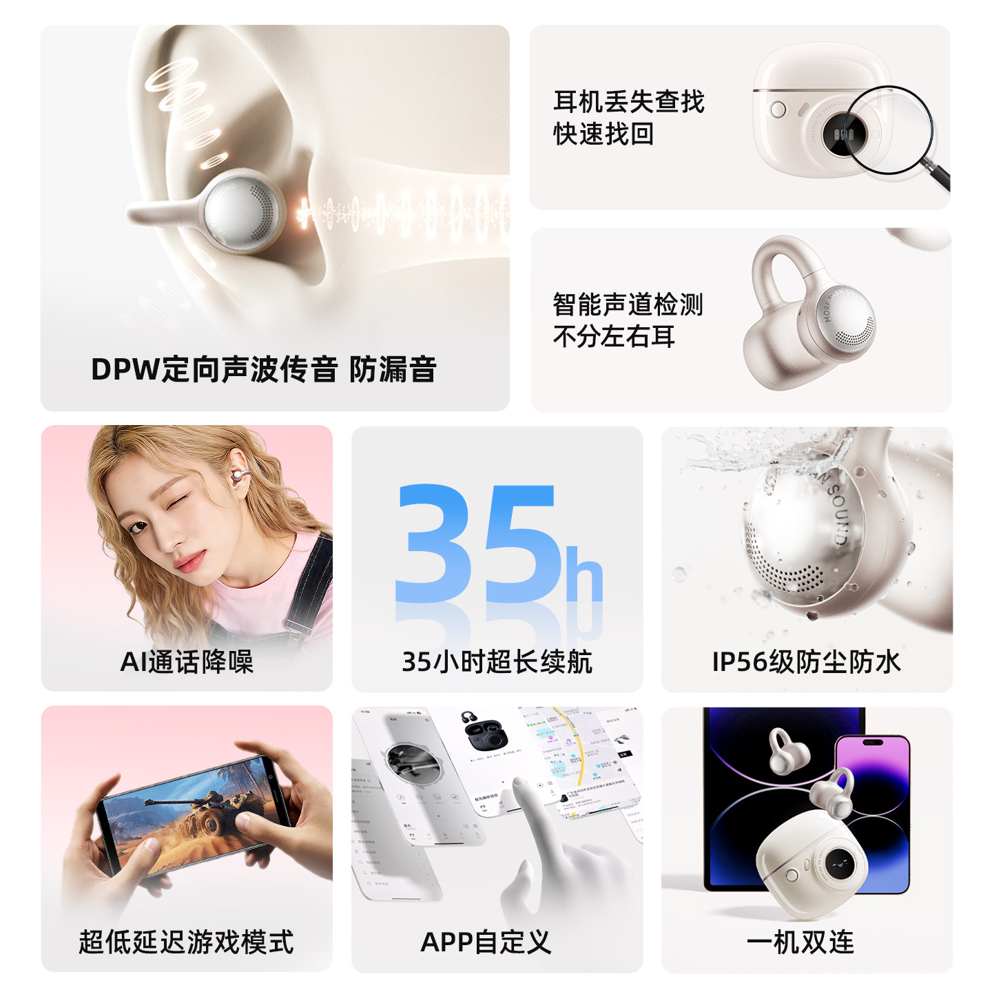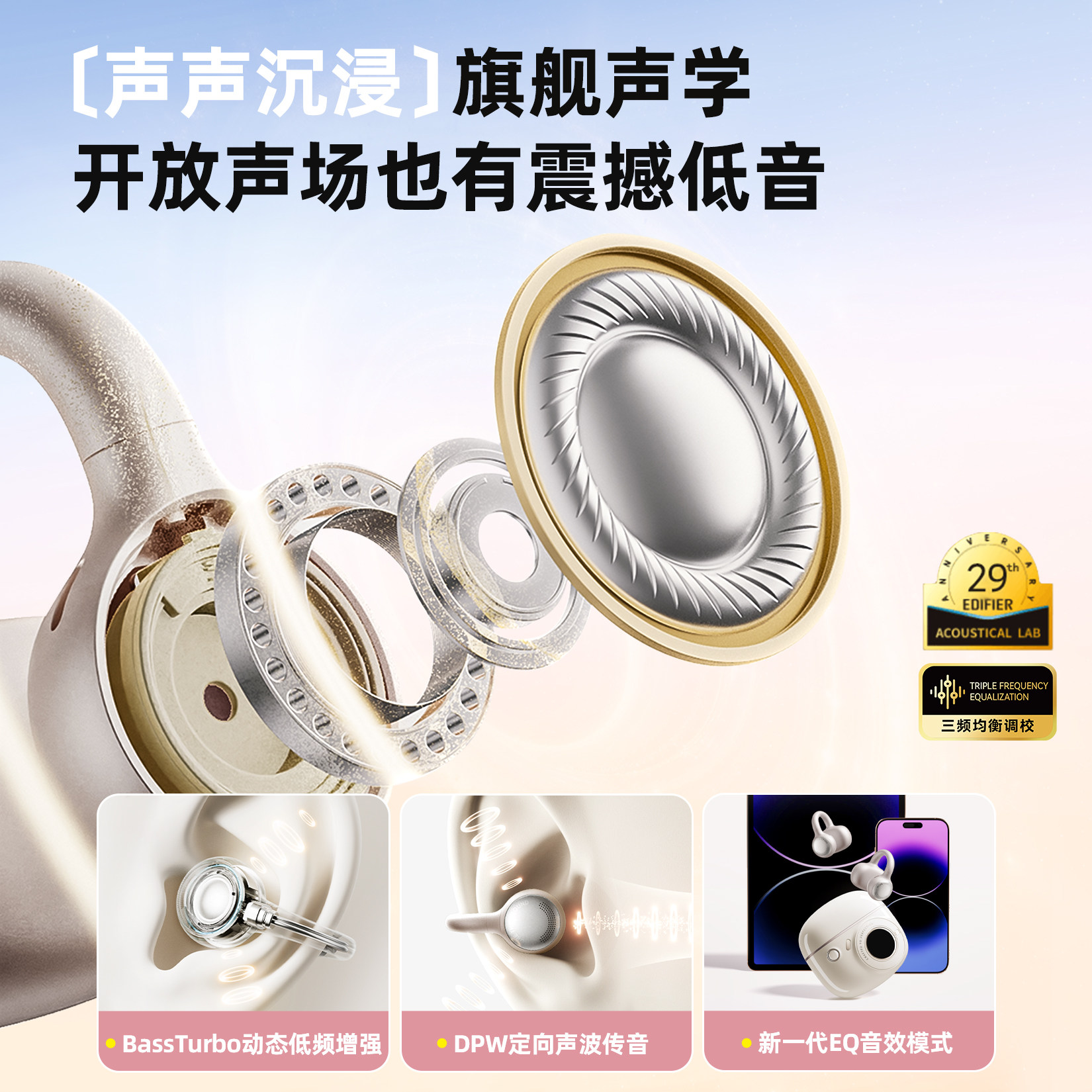 漫步者拍拍耳夹蓝牙耳机无线挂耳开放式不入耳运动游戏2025新款