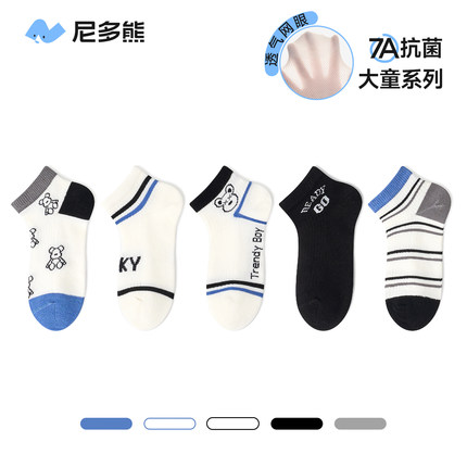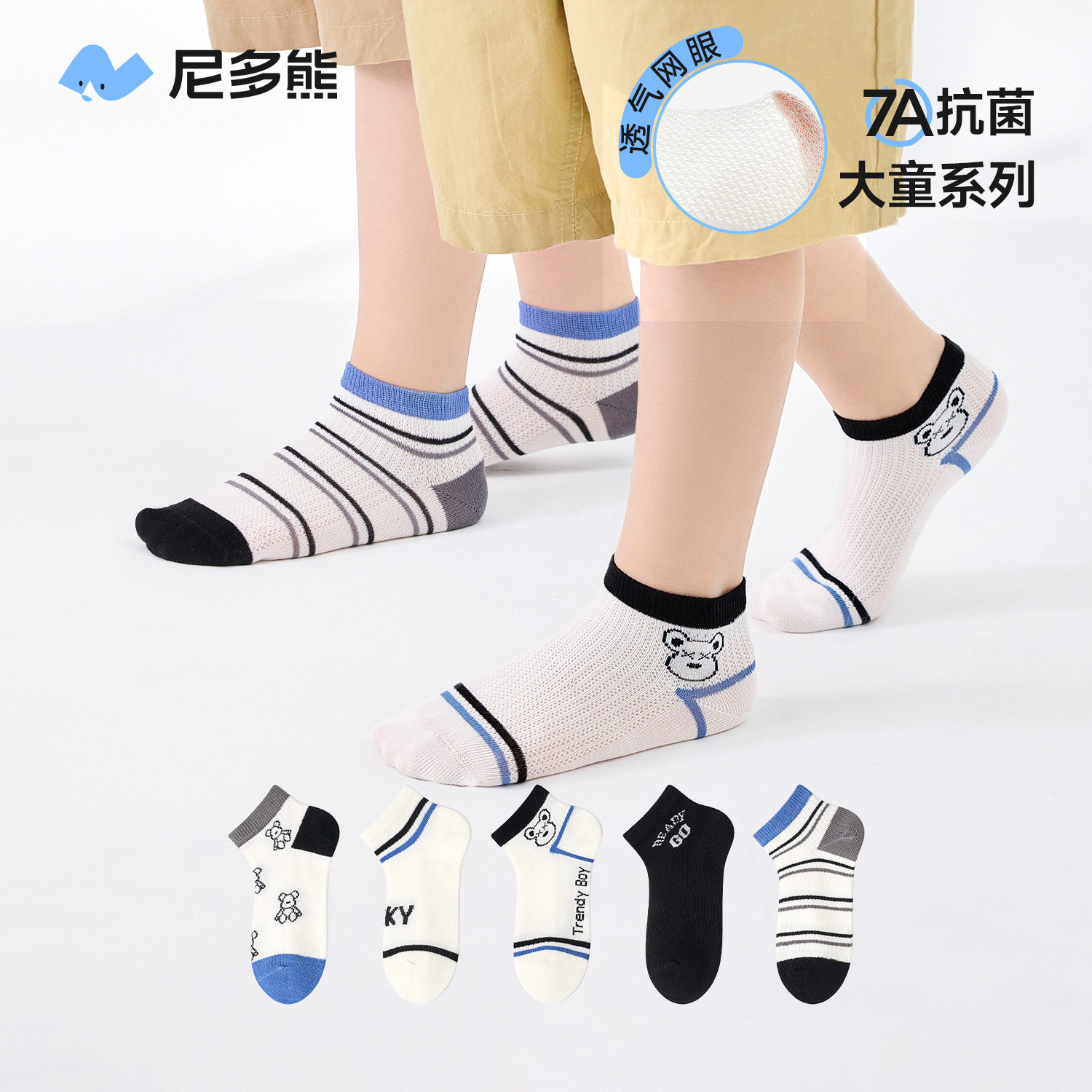 尼多熊儿童袜子夏季薄款棉袜大童船袜学生网眼袜男童袜短筒袜